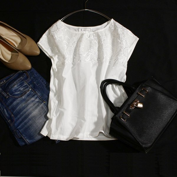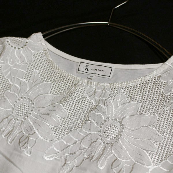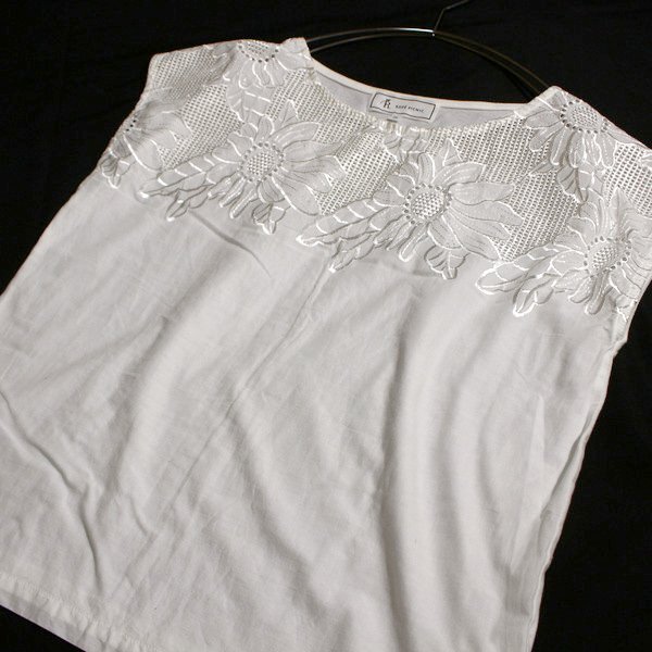 美品 Rope Picnic ロペピクニック 綺麗めパンチング刺繍 バックストレッチ コットン カットソー 38号 M 春 夏 25A07