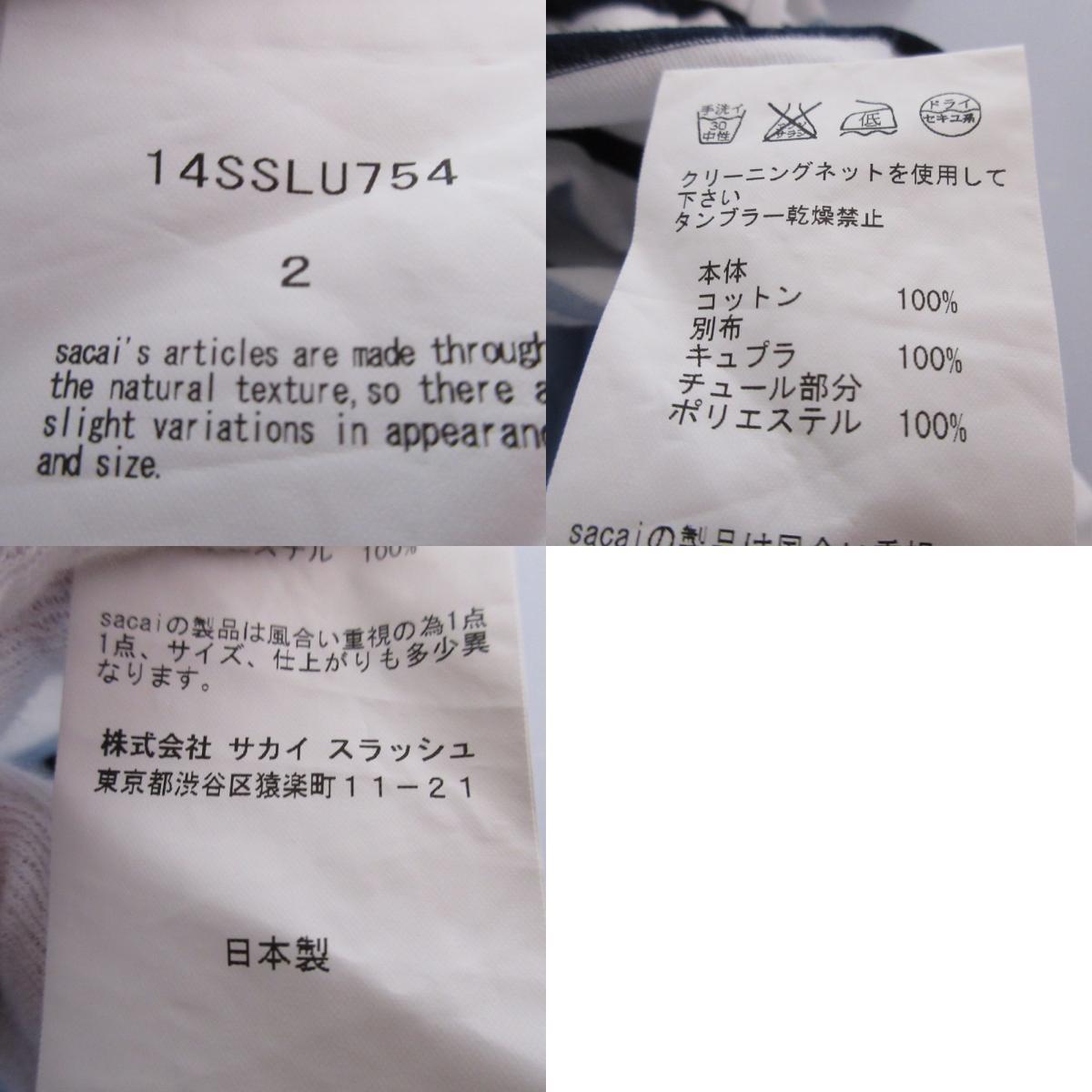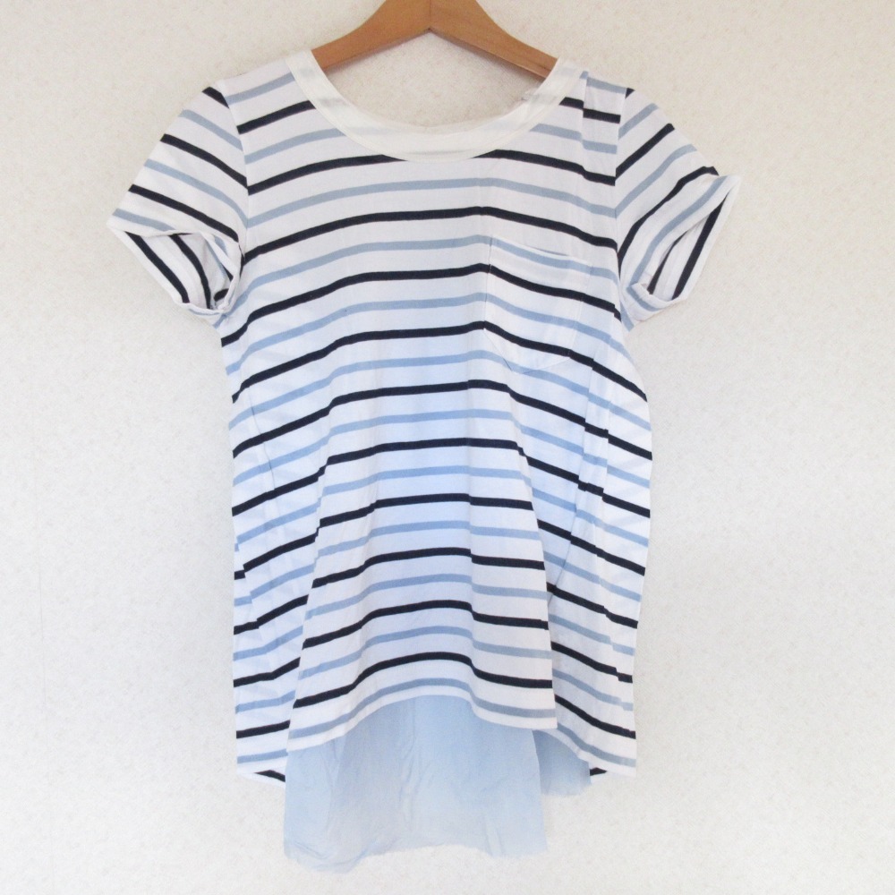 美品 sacai luck サカイラック ボーダー柄 半袖 ドッキング Tシャツ カットソー 2 ブルー系