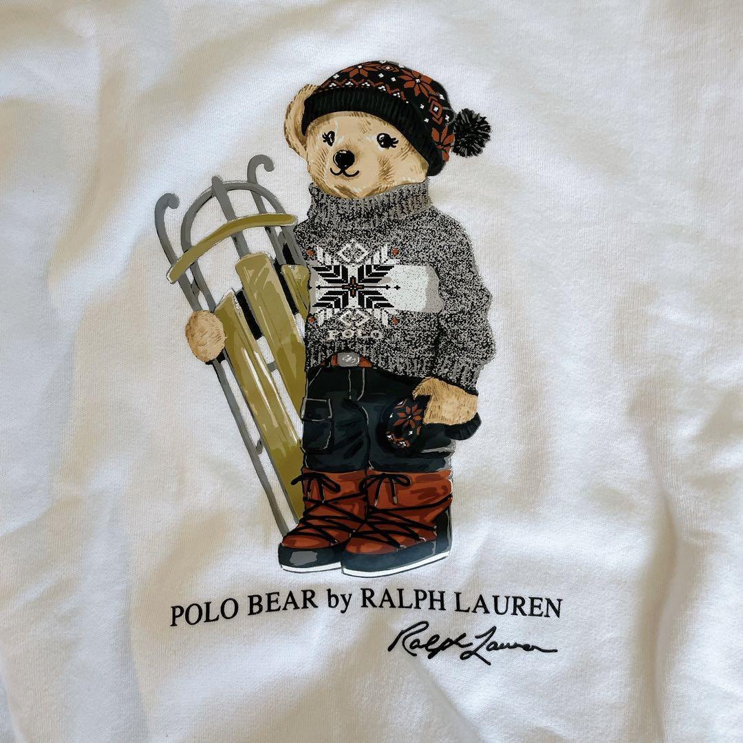 ラルフローレンを象徴する人気キャラクター「ポロベア」がスキーウェア姿でデザインされたスウェットシャツです。
