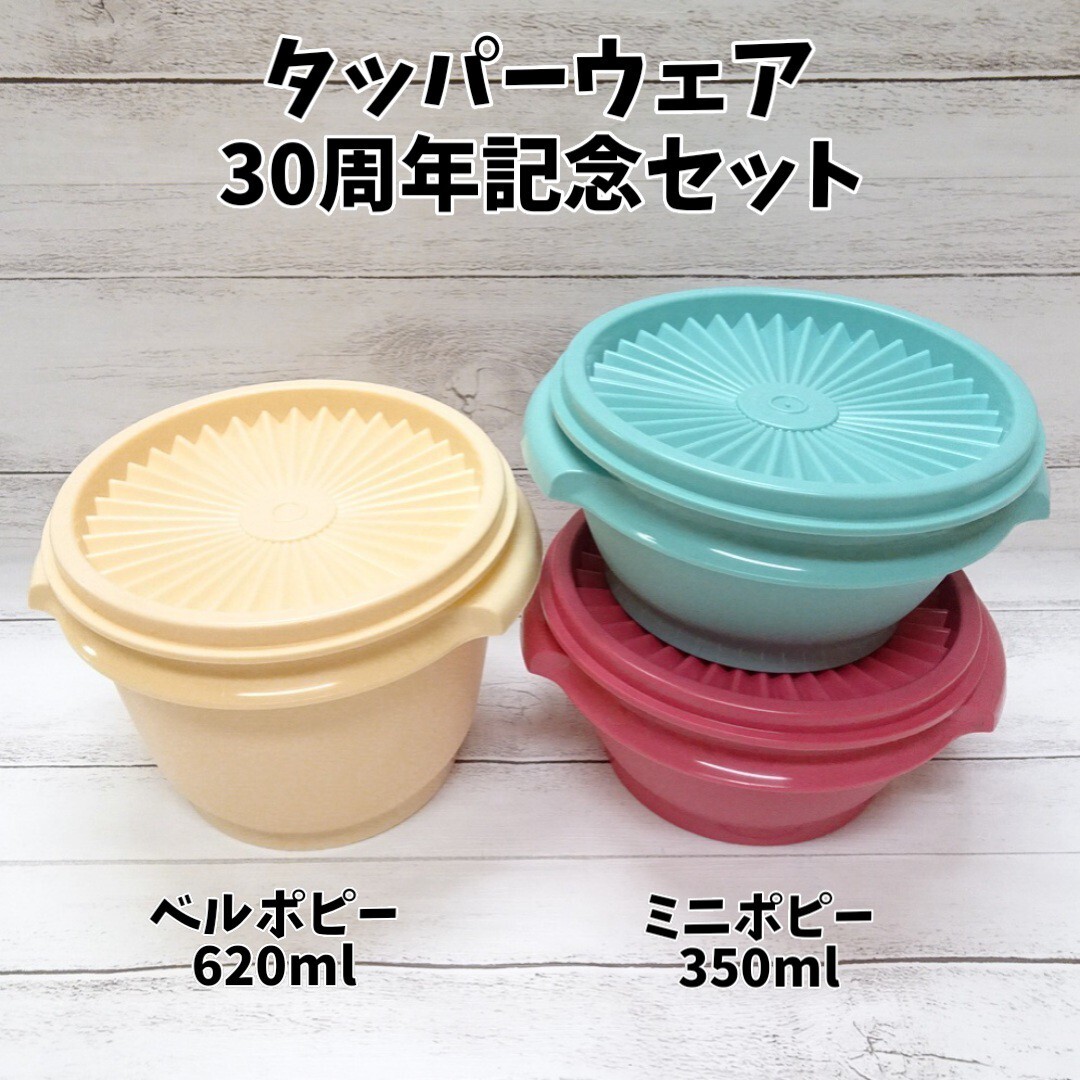 2445 送料無料 タッパーウェア 30周年記念 3点セット 【ベルボピー (350ml)×1】 【ミニポピー (600ml)×2】 / Tupperware 希少 保存容器