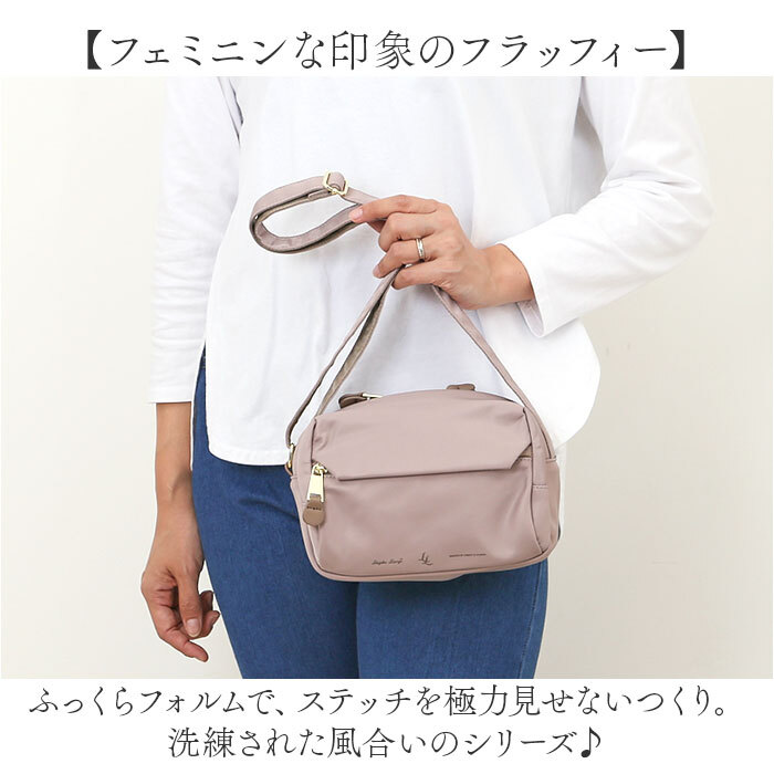 商品説明 | ・・【ミニマルスタイルの相棒に♪】 ・サッと持ち出せて身軽にお出かけ☆Legato Largo フラッフィー ミニショルダー。 ・【フェミニンな印象のフラッフィー】 ・ふっくらフォルムで、ステッチを極力見せないつくり。洗練された風合いのシリーズ♪ ・【両手が空いてストレスフリー】 ・ショルダーの長さを調節し肩掛けや斜め掛け。両手を自由に使えて、アクティブに動ける◎ ・【ガバっと開くダブルファスナー】 ・左右どちらからもオープン。中身を確認しやすく、出し入れスムーズ。 ・【マストアイテムをひとまとめ】 ・お財布やミニポーチなど、必需品がすっきりまとまるサイズ感。軽量なコンパクトサイズ◎ ・【サクッと取り出せて迷子知らず】 ・合計3つのポケットを配置。バッグの中で、小物を探す手間が不要。 ・【ちょっとの雨なら大丈夫】 ・汚れや水滴を弾きやすい、両面はっ水加工済み。お手入れも拭き取るだけ。 ・(※)完全防水ではありません。 ・【ディテールにもこだわりをプラス】 ・合皮の引手パーツや同色系で揃えたラバープリント。落ち着きがあり、どんなコーデにもマッチ! ・【お気に入りを選べるカラー】 ・ベーシックや、程よい差し色になるカラーをラインナップ。飽きが来ず長く愛用できるデザイン。 ・【ポケット仕様】 ・内側:オープンポケット×1 ・前面:ファスナーポケット×1 ・背面:オープンポケット×1 |