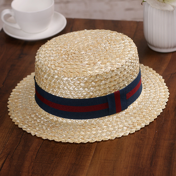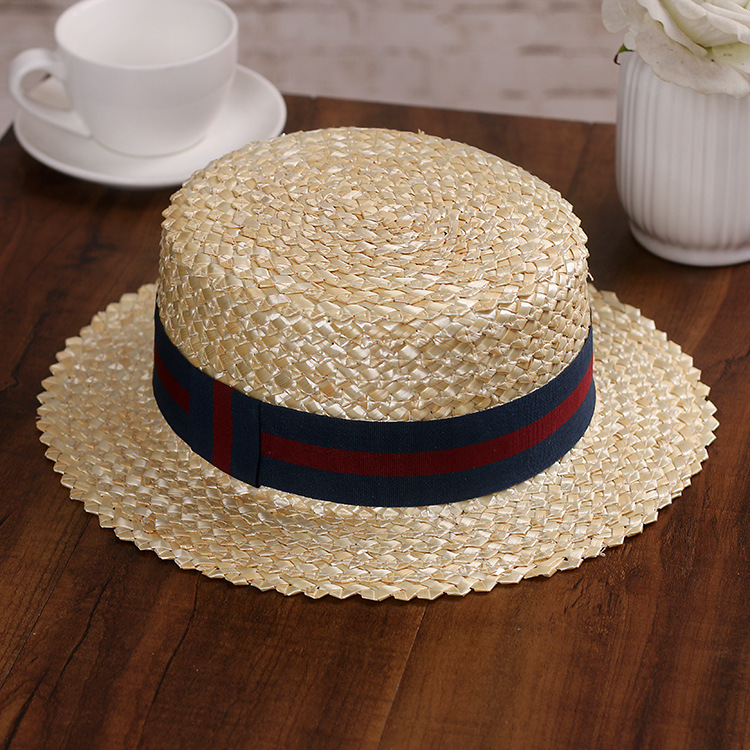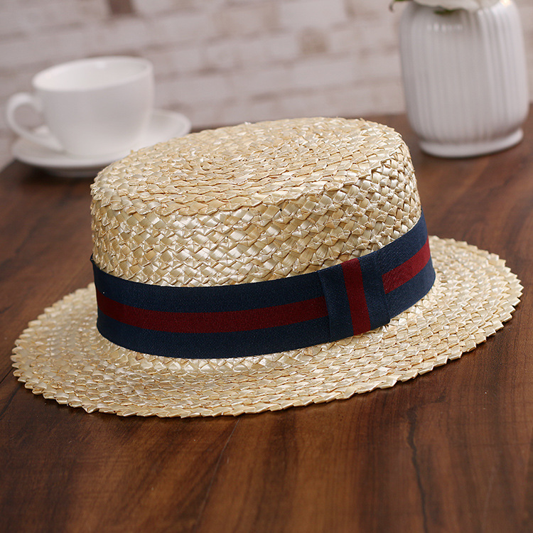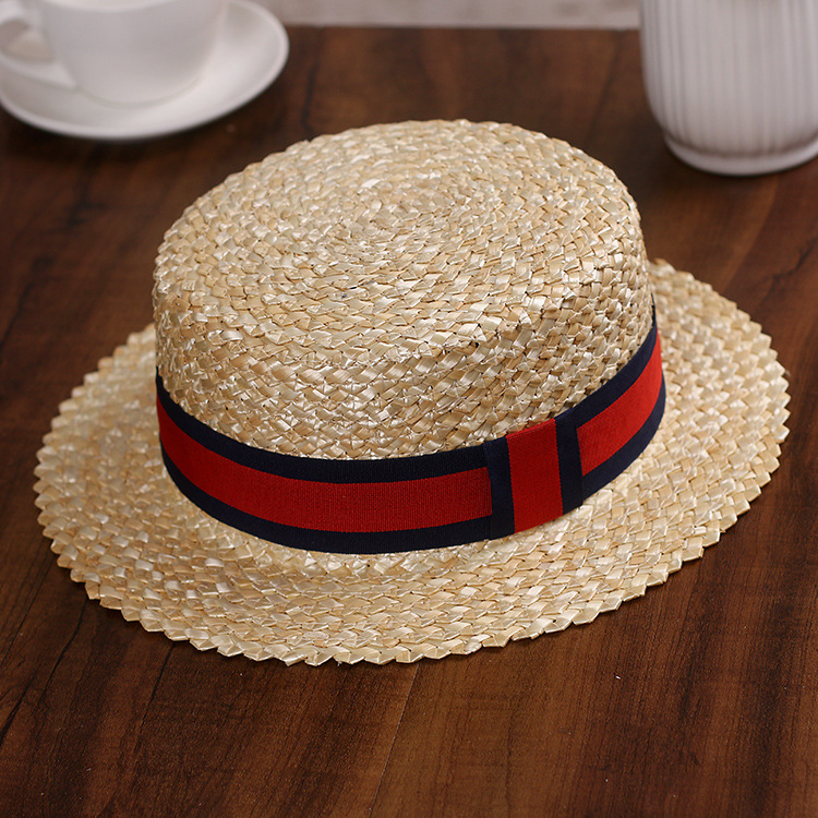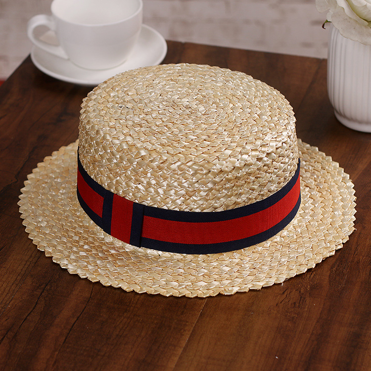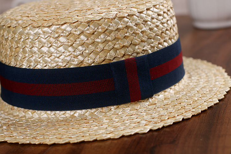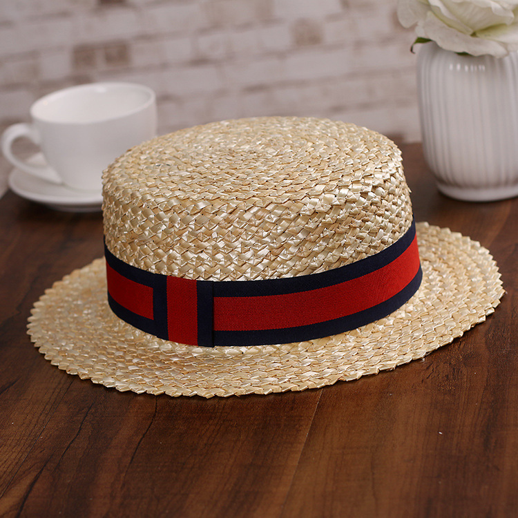 オールド感*ヴィンテージ レトロ オールドスタイル フラットヘッド ストローハット カンカン帽子 新品 メンズ レディース USA レッド