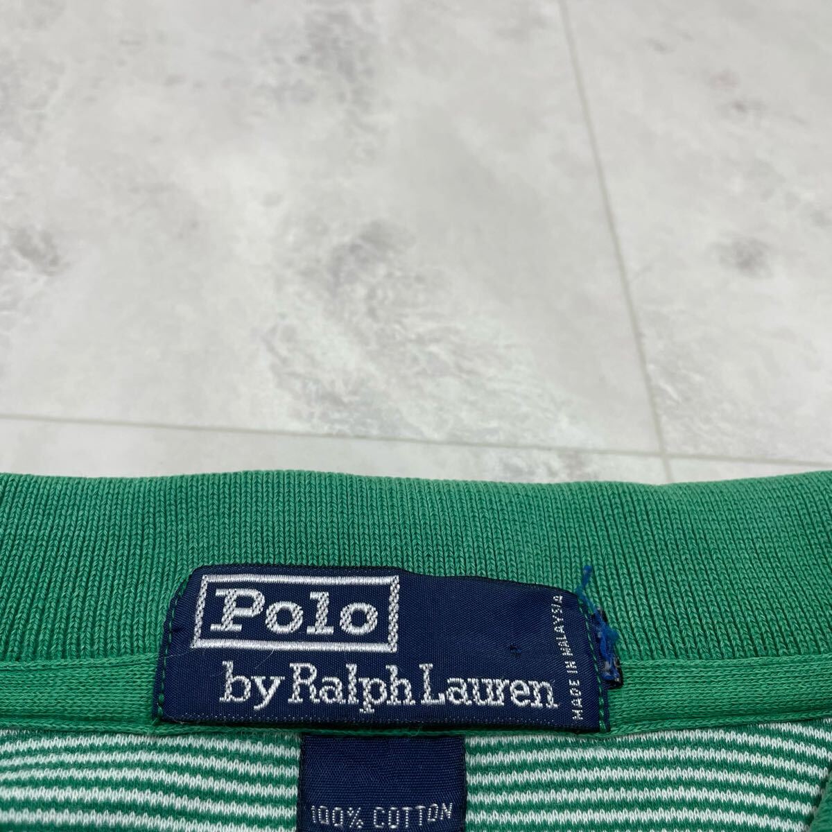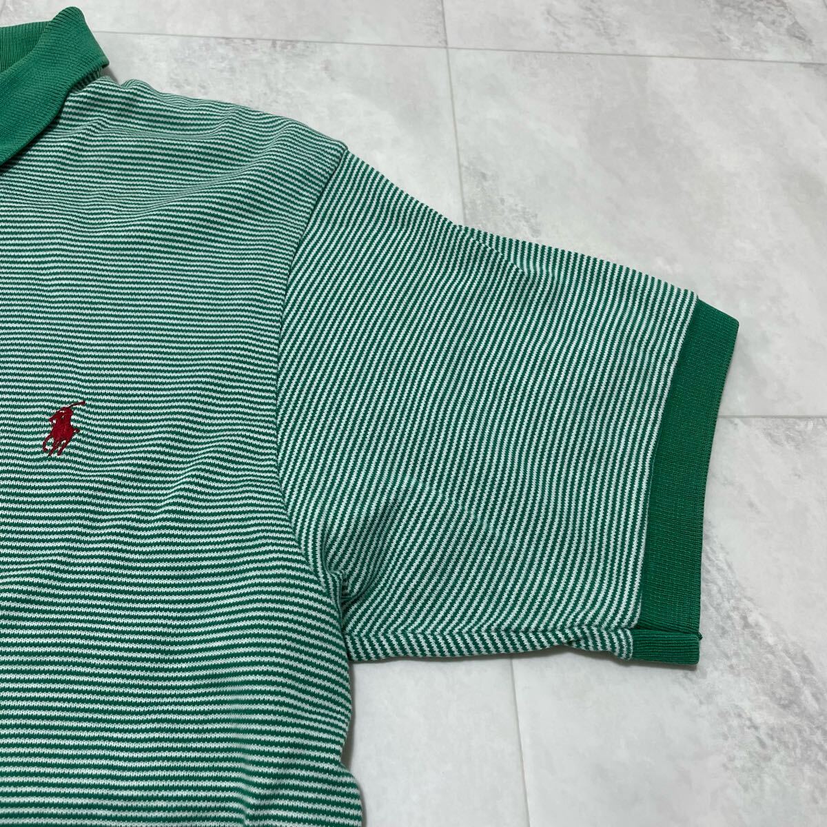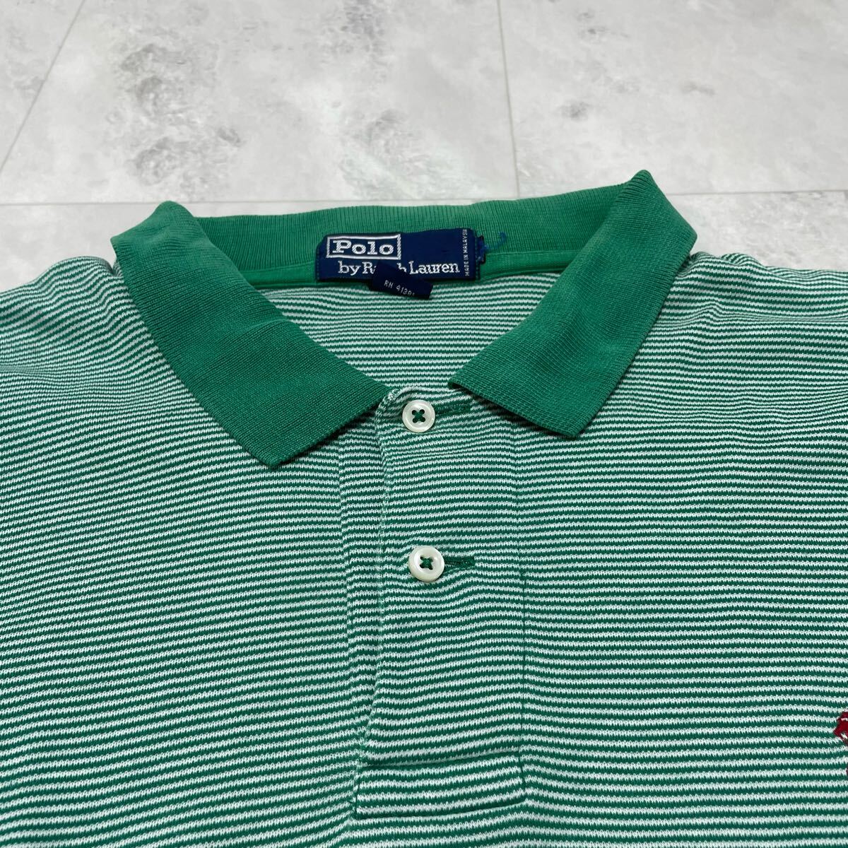 Polo by Ralph Lauren ポロラルフローレン 半袖 ボーダー 90s USA企画 ヴィンテージ 刺繍ロゴ グリーン サイズM相当 玉SS3803