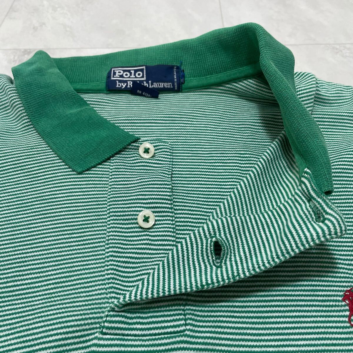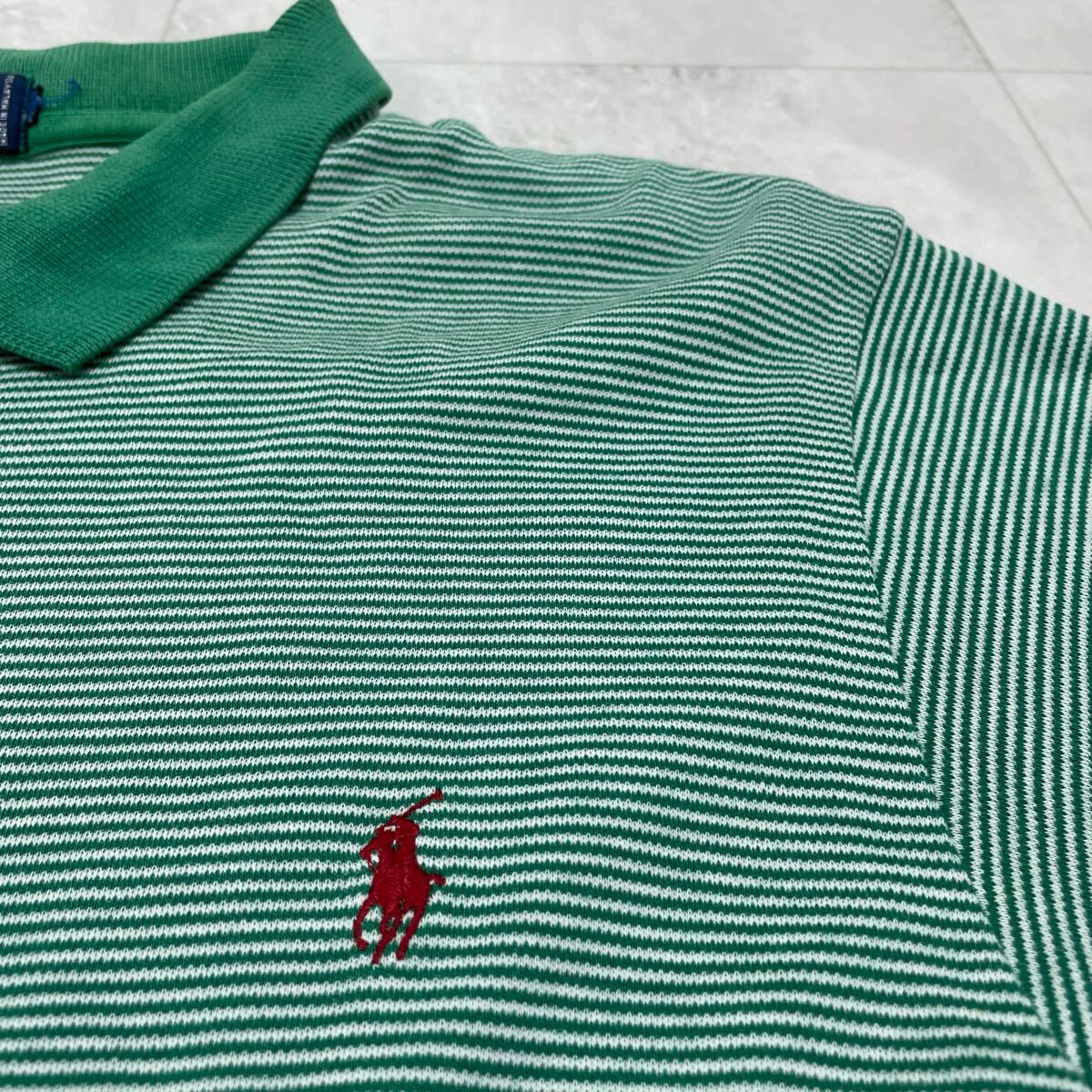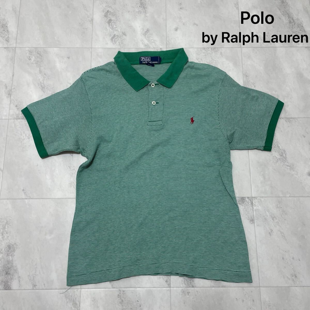 Polo by Ralph Lauren ポロラルフローレン 半袖 ボーダー 90s USA企画 ヴィンテージ 刺繍ロゴ グリーン サイズM相当 玉SS3803