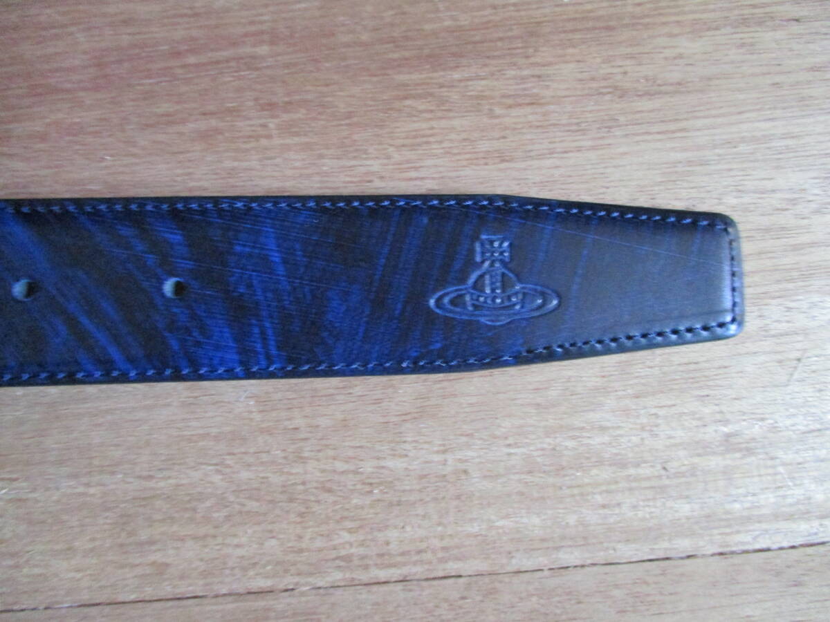 Vivienne Westwood:*全長113cm*幅3,4cm*擦れた模様革*ビジネスベルト[NV]サイズ調整可能