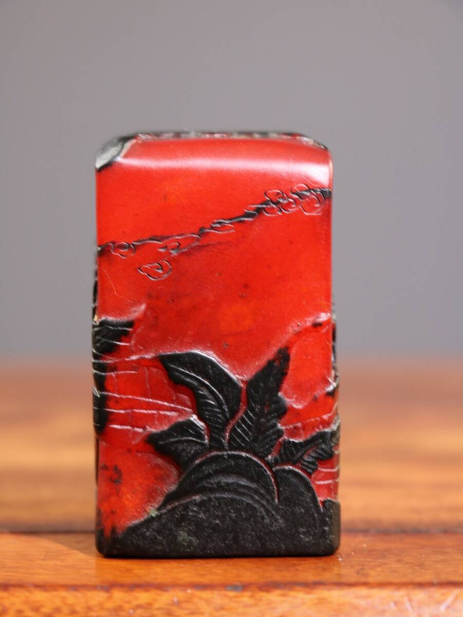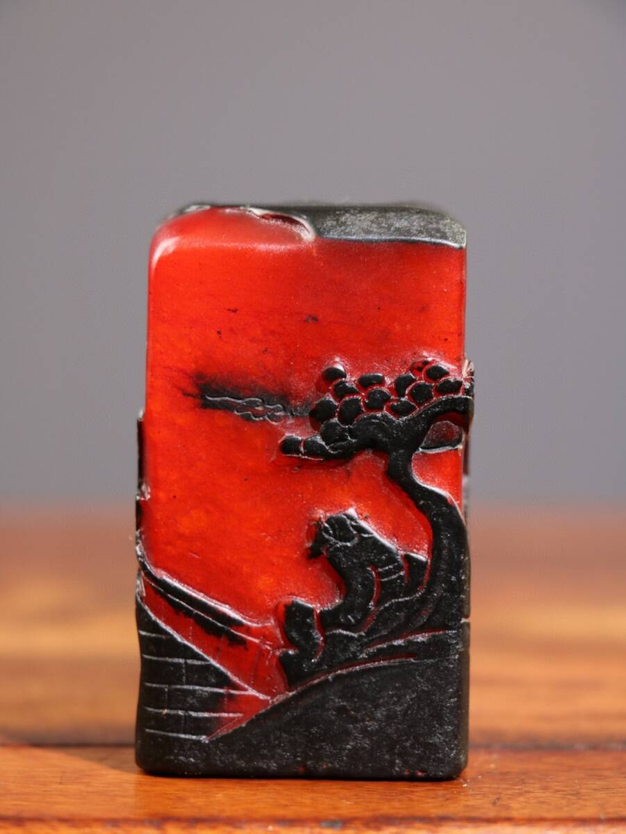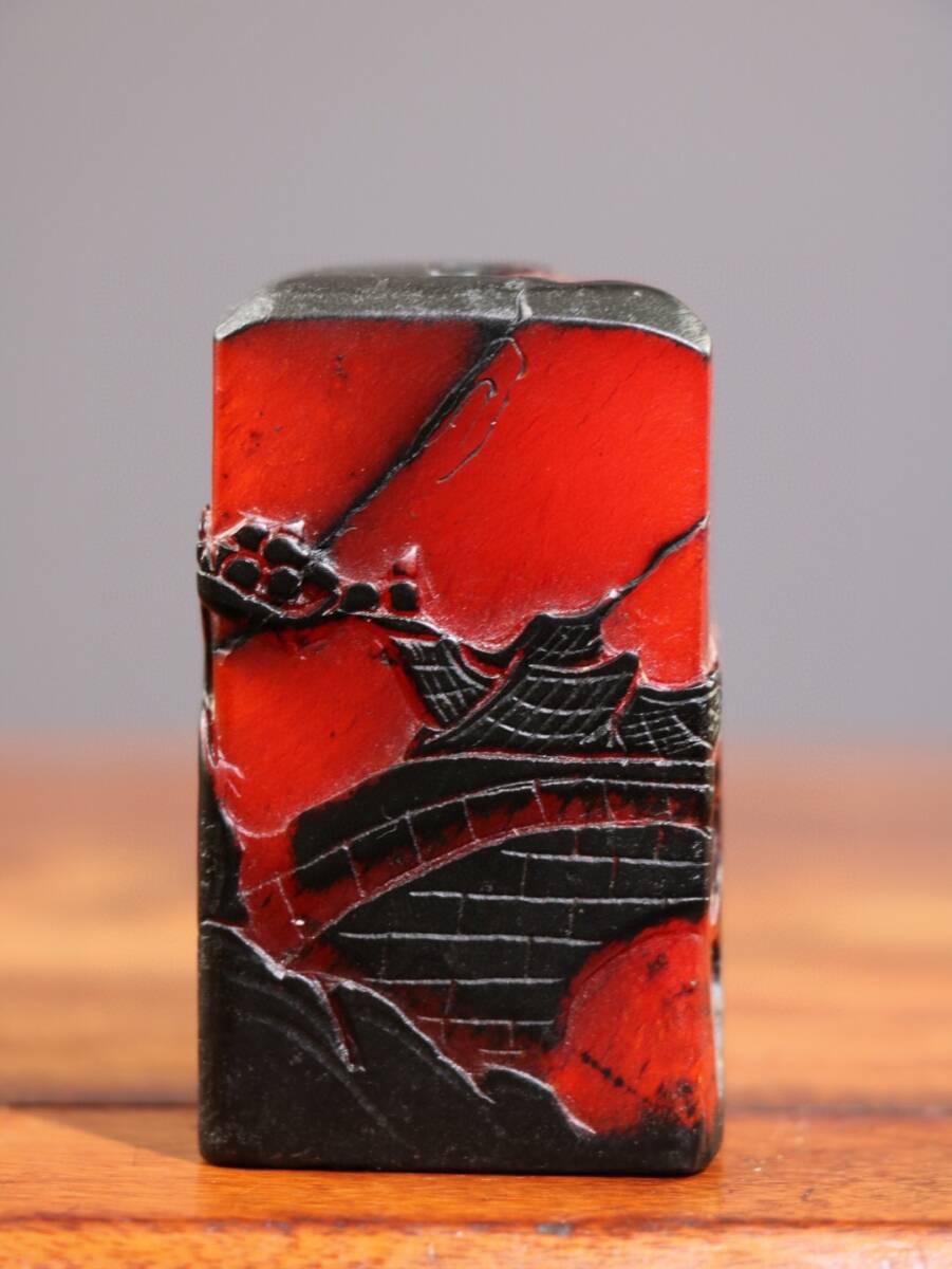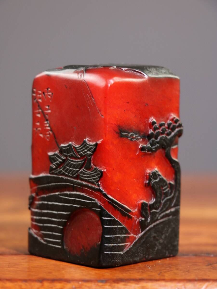 【超珍館蔵】寿山石 烏鴉皮 紅田黄石 細密彫 觀滄海紋印章 印章 印鑒 文房具 書道品 古賞物 古董品 古美術品 時代物 旧家蔵出 稀少珍蔵品