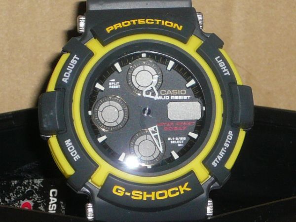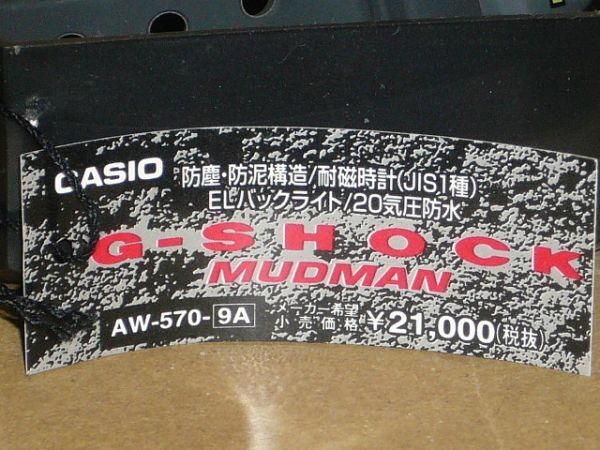 G-shock MUDMAN 黒 AW-570-9Aです。1997年9月生産終了。ゆうパック元払いで発送を予定しています。未使用品(写真に写っているものですべてです)。購入後一度も電池交換してないので交換願います。経年による変色、劣化及び製造上で付着する汚れ、箱、タグなどのコンディションを細部にわたって気にされる神経質な方はトラブル防止のため入札をご遠慮ください。個人取引のオークションのため使用するにあたって著しい支障のある不良品以外は一切対応いたしかねますのでノークレーム、ノーリターンとさせていただきます。入札をされた方は記載された商品説明に同意されている方とさせていただきます。付属品は、プライスタグ、取扱説明書、専用ケースです。購入後ダンボール箱に入れたまま保管してあり,未使用品ですが、1997年のモデルですので、中古品として出品します。