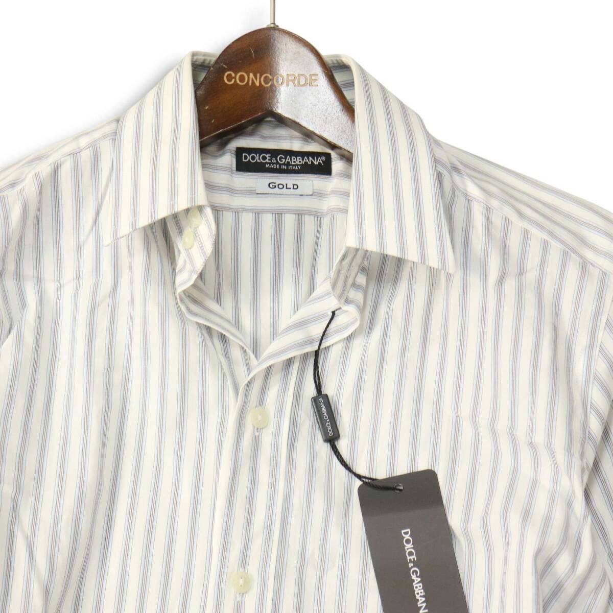 タグ付き★ DOLCE&GABBANA ドルチェ&ガッバーナ GOLD★ 通年 長袖 ストライプ シャツ Sz.14 1/2/37 メンズ