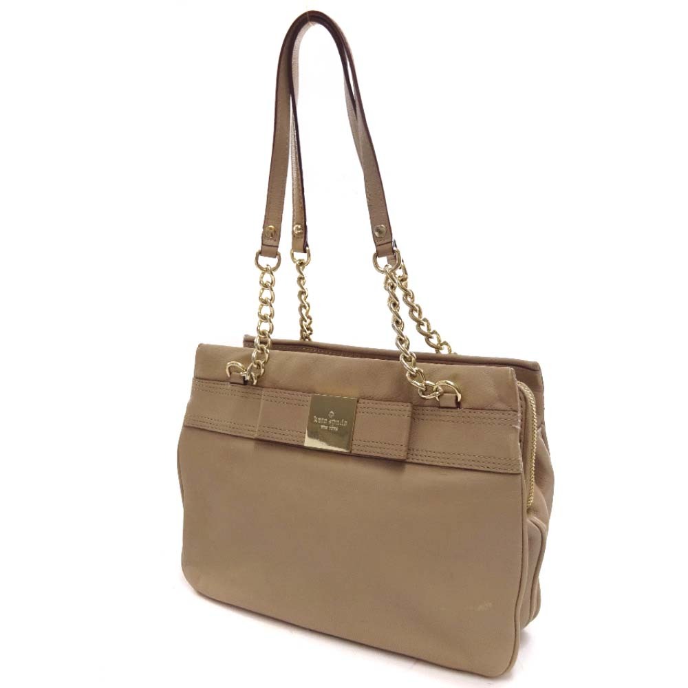 ケイトスペード リボンモチーフ チェーン ショルダーバッグ レディース レザー ベージュ ゴールド金具 PXRU3803 中古 Kate Spade