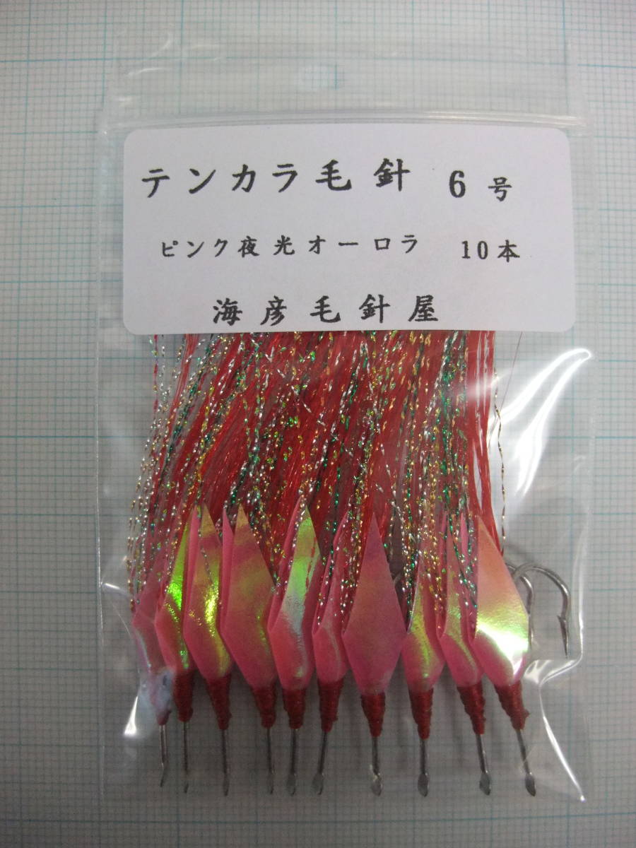 6APYO テンカラ毛針6号 イソ縄毛針 オキメバル 赤フラッシャー ピンク夜光オーロラシート付き 10本セット   10本セット