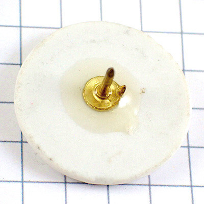 | ピンズは、裏側に針が付いており、金属の留め金でとめるようになっています。 留め金が付属しています。新品の留め金も一緒に発送いたします。 | |