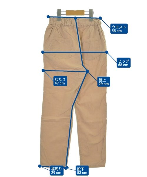 ウエスト:55cm,裾周り:29cm,ヒップ:68cm,わたり:47cm,股上:29cm,股下:53cm |