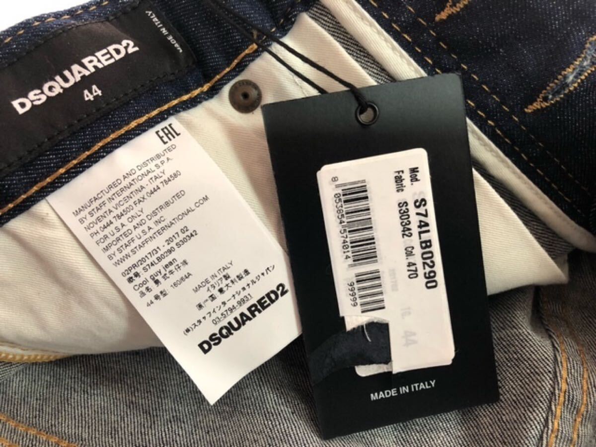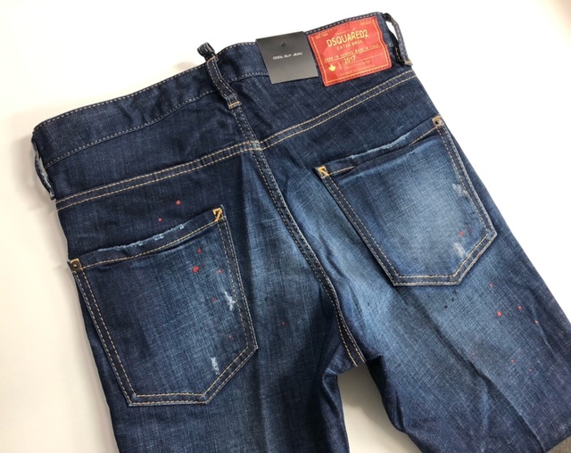 DSQUARED2 COOL GUY JEAN S74LB0290 44 MADE IN ITALY PATCH INDIGO STRETCH DENIM JEANS 未使用 ワッペン ストレッチ ペイント加工