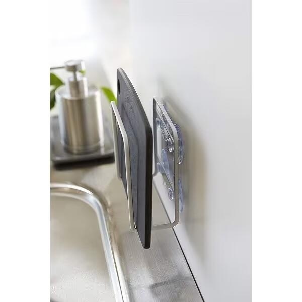 特長 シンクの壁面に吸盤で簡単取り付け。水切れのいいデザインで、いつでもまな板を清潔に保てます。コンパクトサイズで、シンク周りのスペースも取りません。吸盤で簡単取り付け。接地面を傷つけない構造。シンクの内壁面にも取り付け可能。 ●サイズ:約W12×D6×H12cm ●本体:スチール(ユニクロメッキ+粉体塗装) 吸盤:PVC×4 ●耐荷重:約3kg