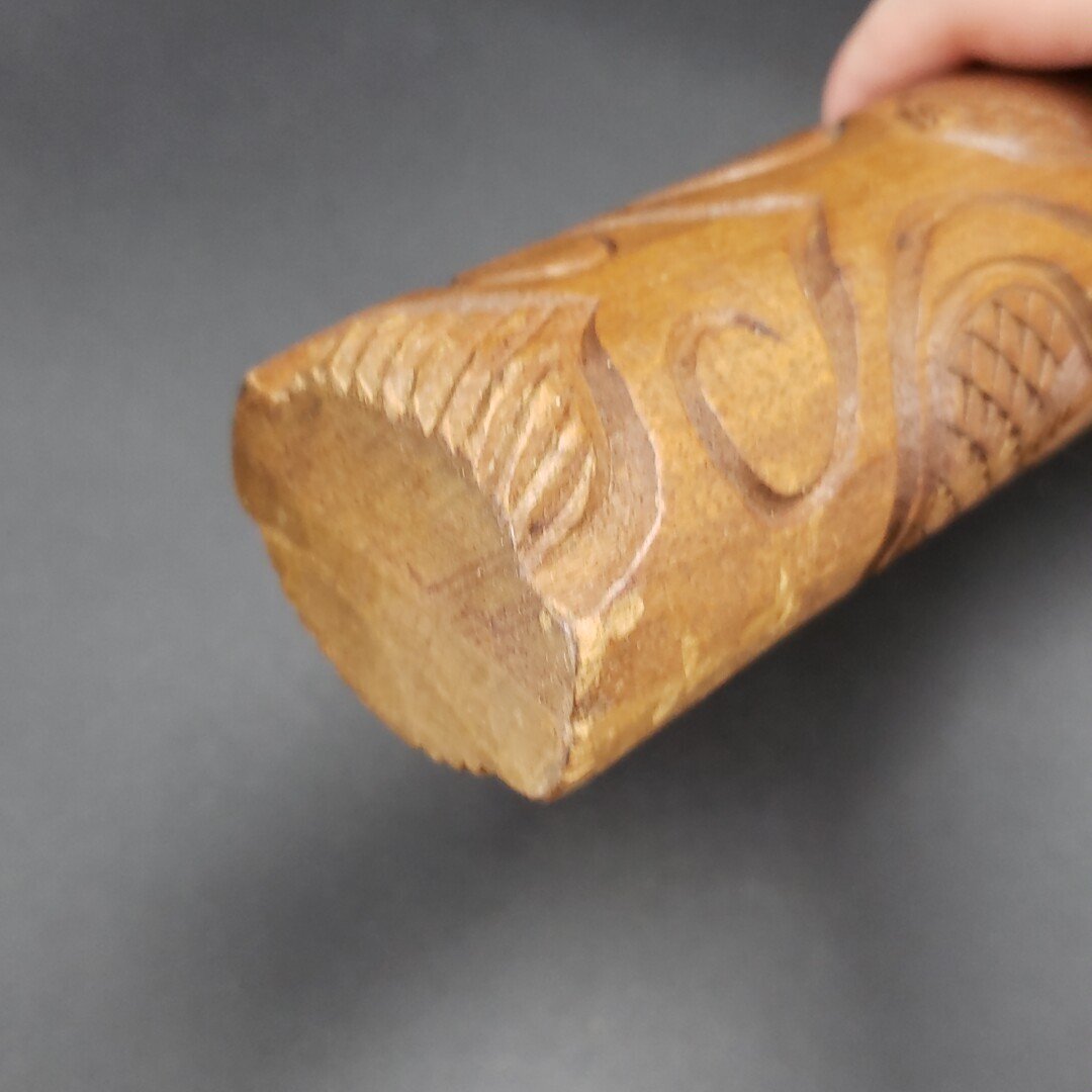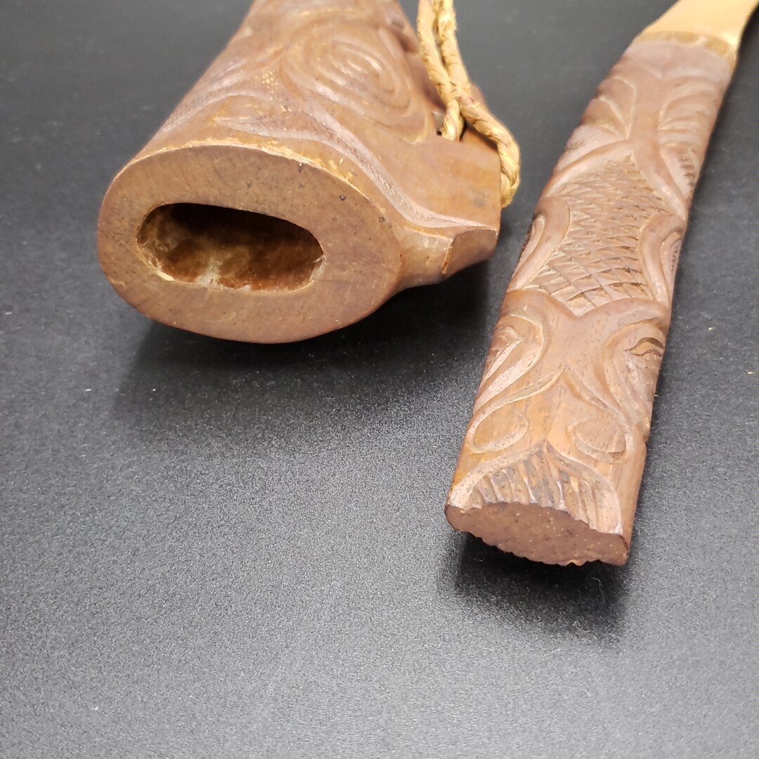 アイヌ民芸品の木刀です。経年による汚れ、擦れがあります。全長約74cmと大き目サイズなので存在感のあるインテリアになりそうです。