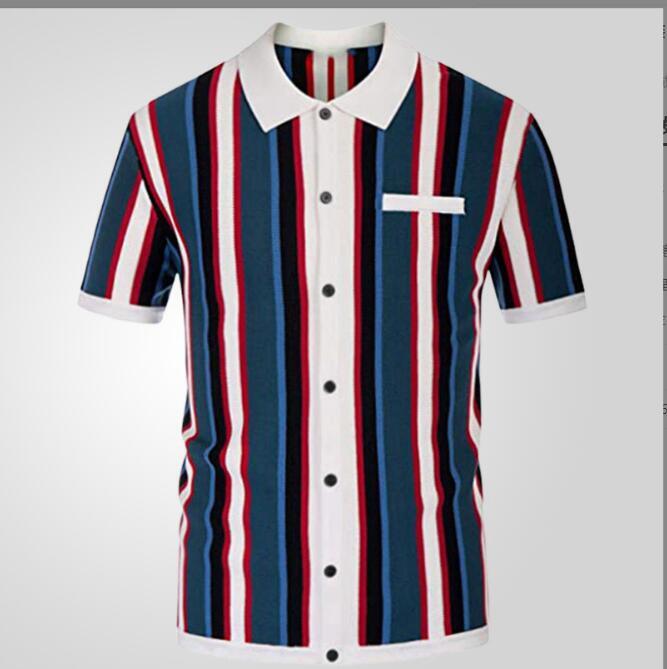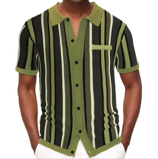 新品メンズ ポロシャツ Tシャツ 半袖 ニット ストライプ柄 涼しい カジュアル シャツ 夏物 ゴルフウェア トップスM-3XL