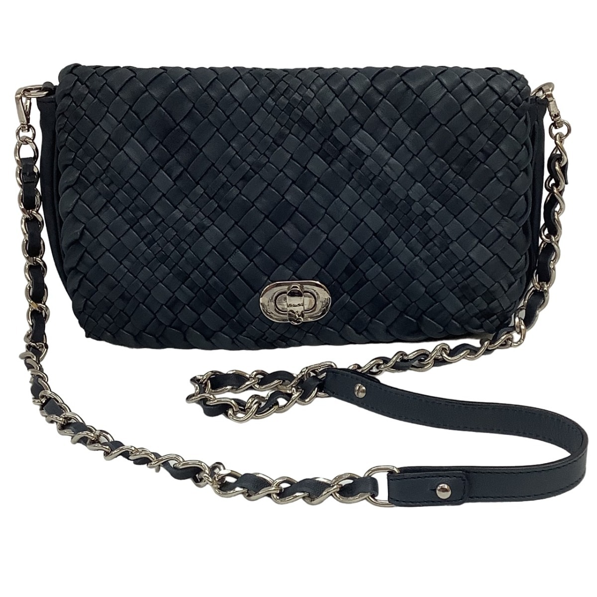 【商品名】中古 FALORNI ファロルニ レディース ショルダーバッグ レザー ネイビー やや傷や汚れあり