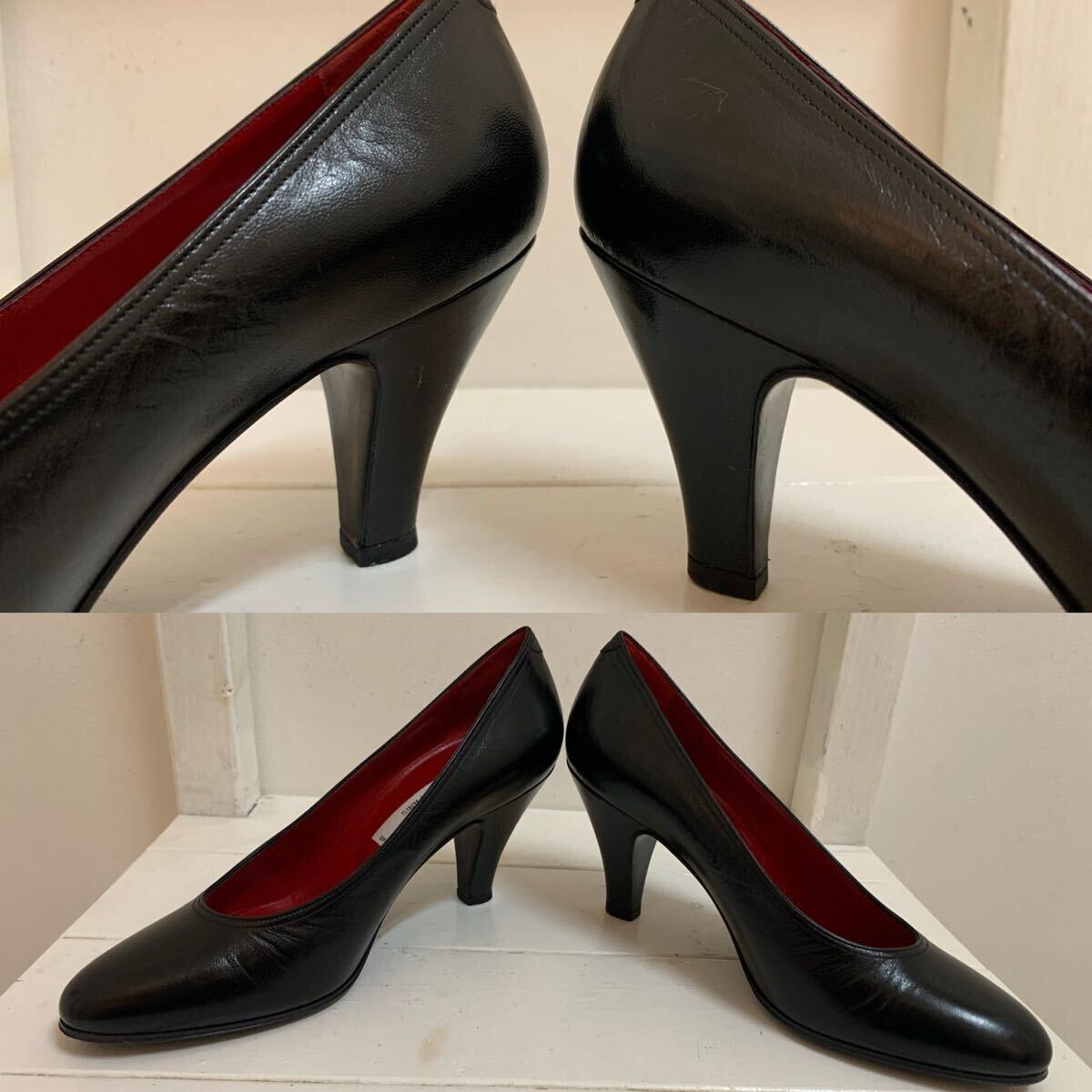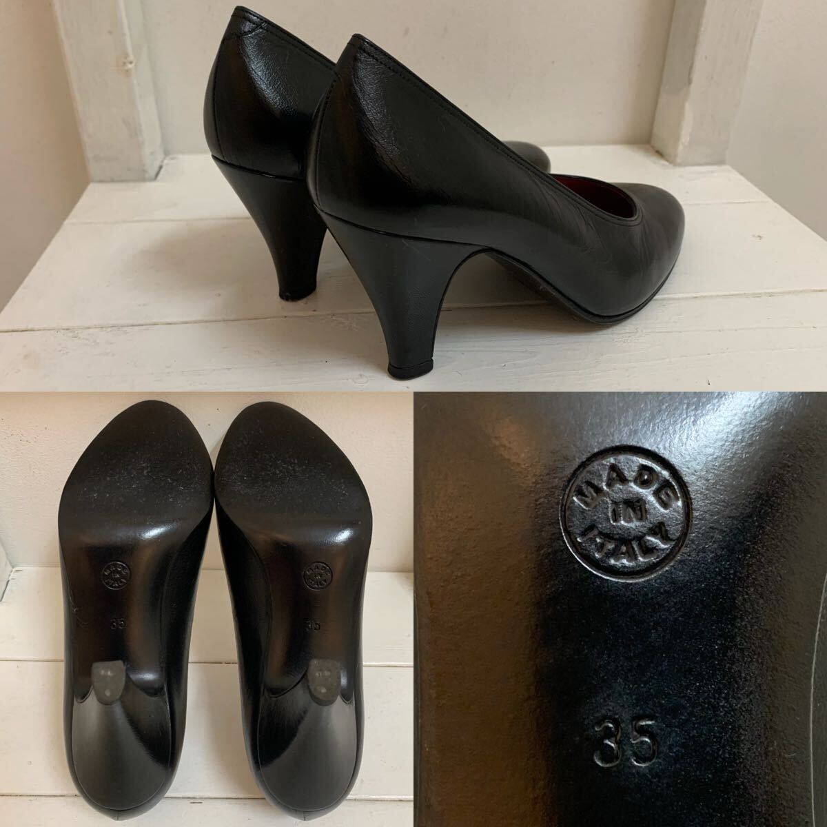【IETM】80s MADE IN ITALY イタリア製 レザーヒールパンプス レザーパンプス ヴィンテージパンプス ブラック 35 アーカイブ