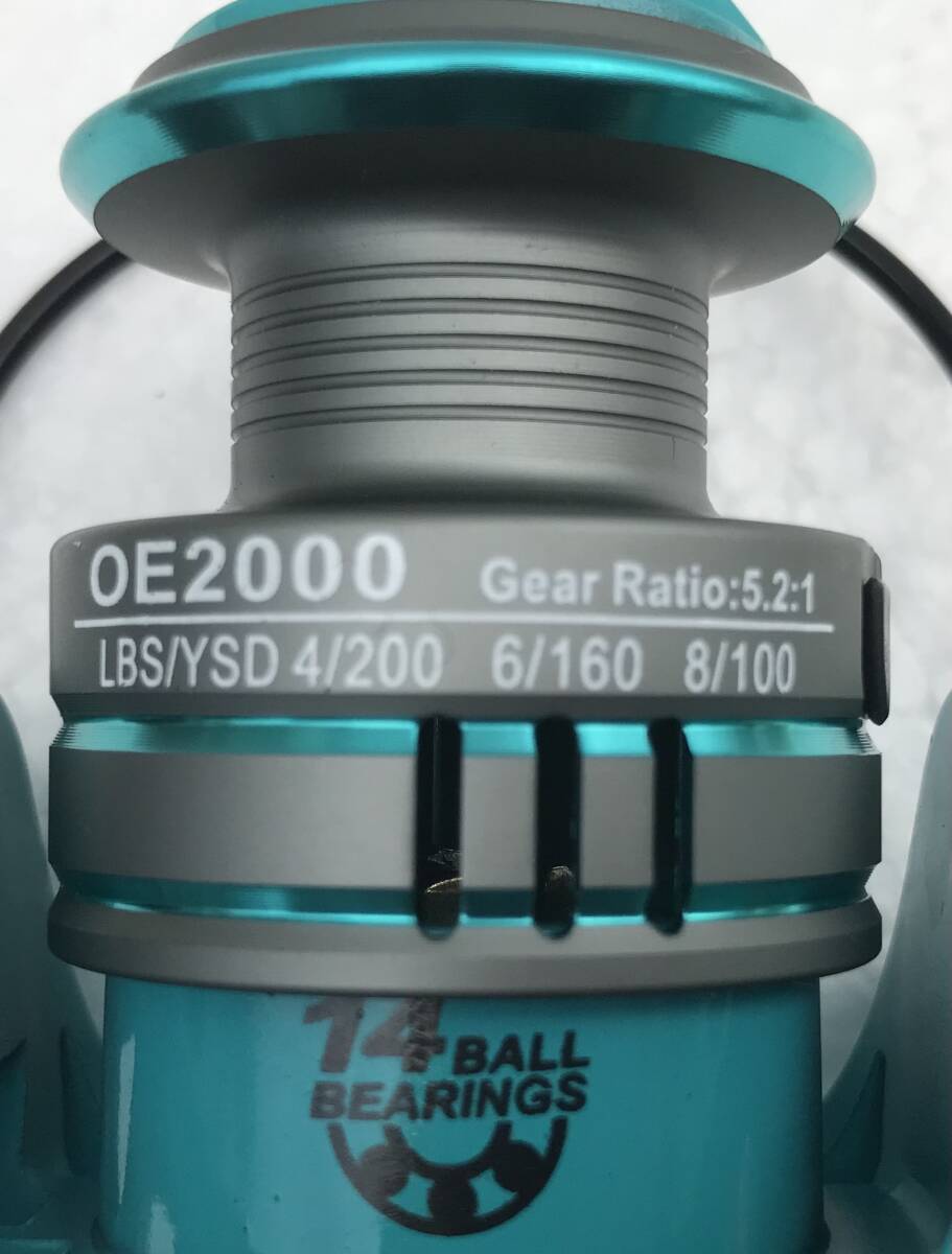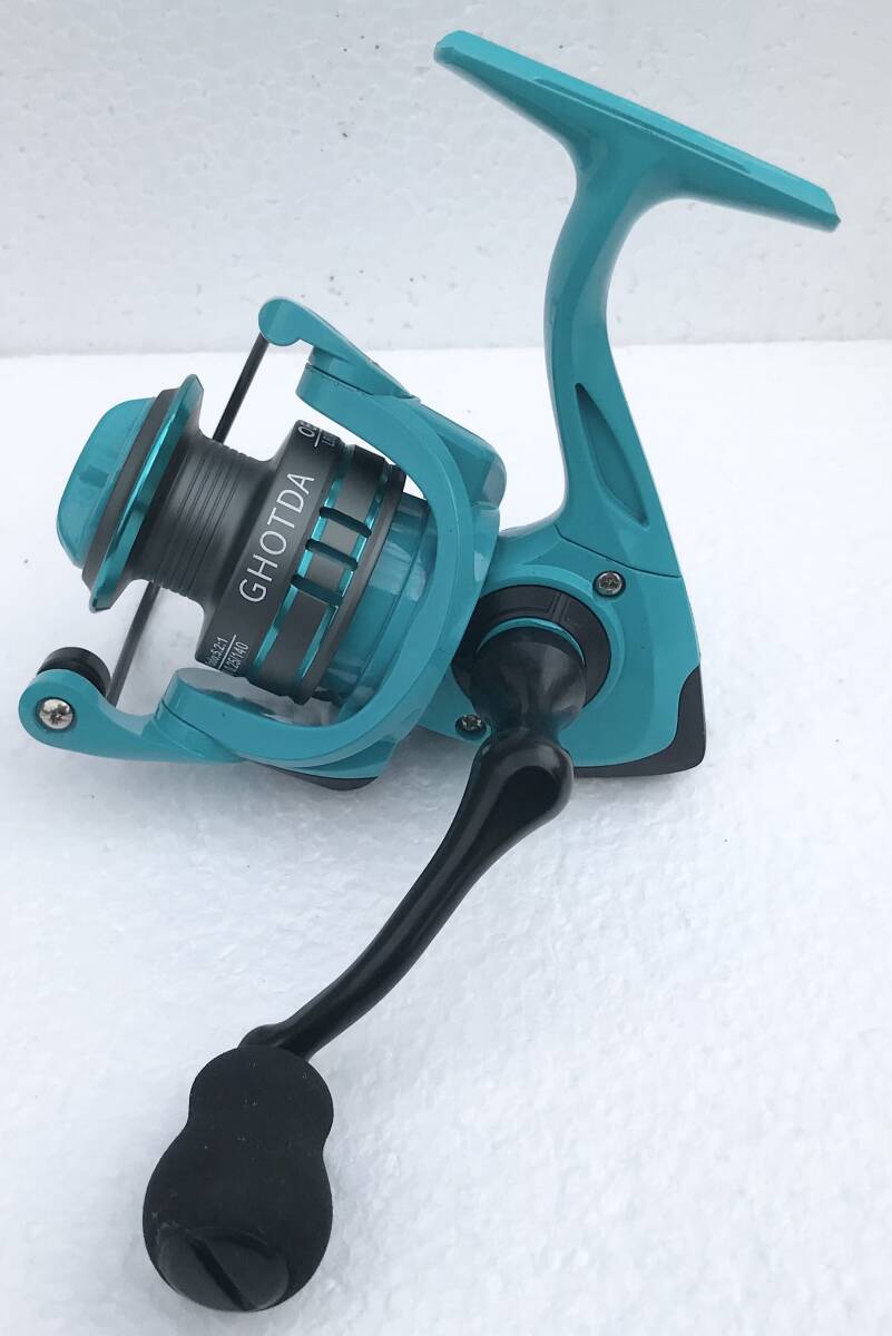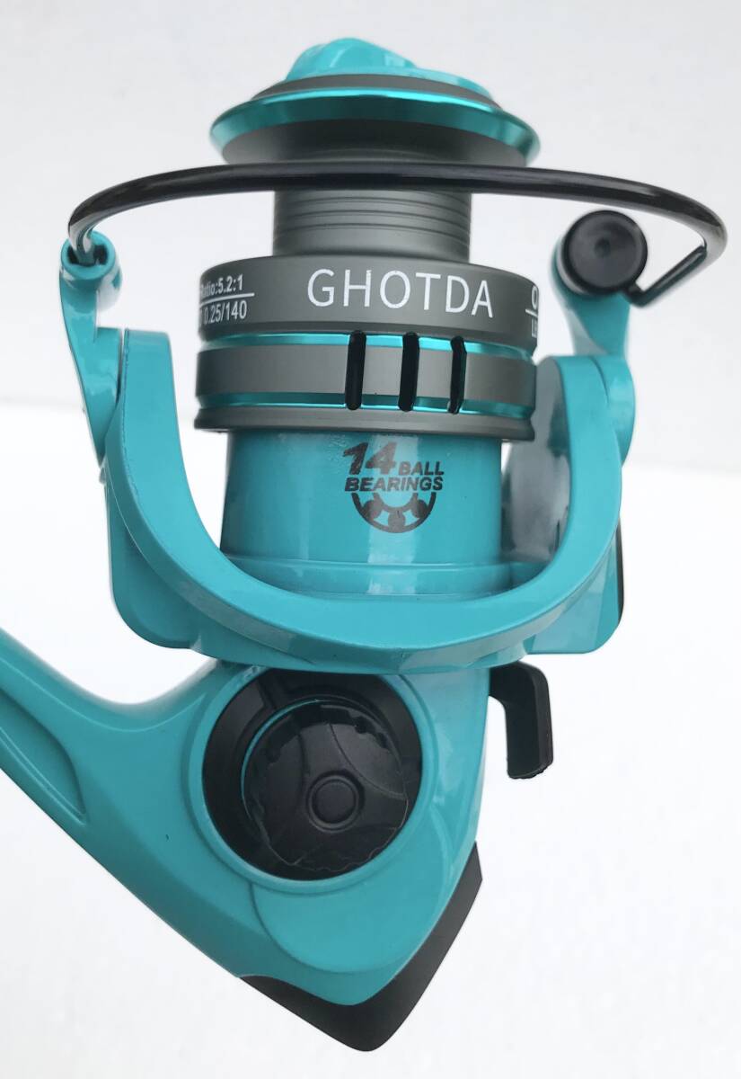 写真のGHOTDAスピニングリール ターコイズブルーOE2000(新品未使用)を発送します(送料無料)。