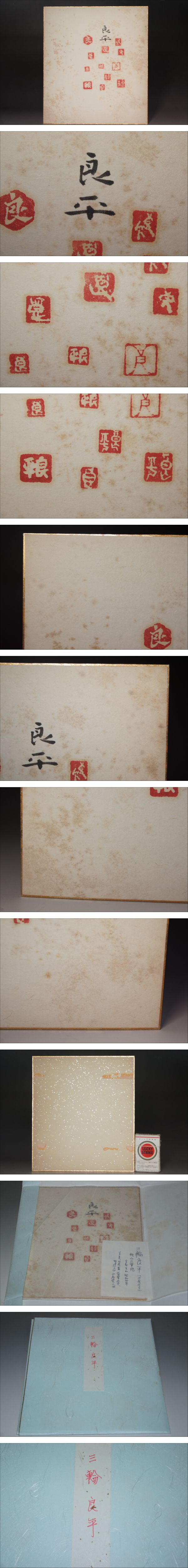 | 日本画家【三輪良平】色紙 肉筆 サイン 印譜 落款印 落款集 真贋保証 美術評論社宛 日展評議員 京都市生 山口華楊に師事 篆刻 書 | |||