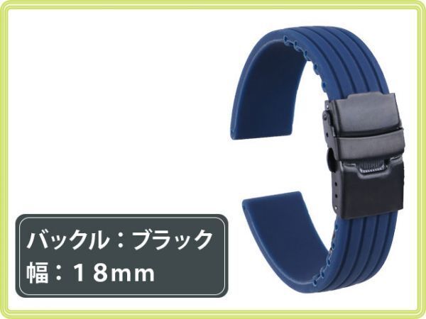 時計バンド 交換ベルト シリコーンゴム 腕時計 ストラップ 18mm ブラック金具×ネイビー