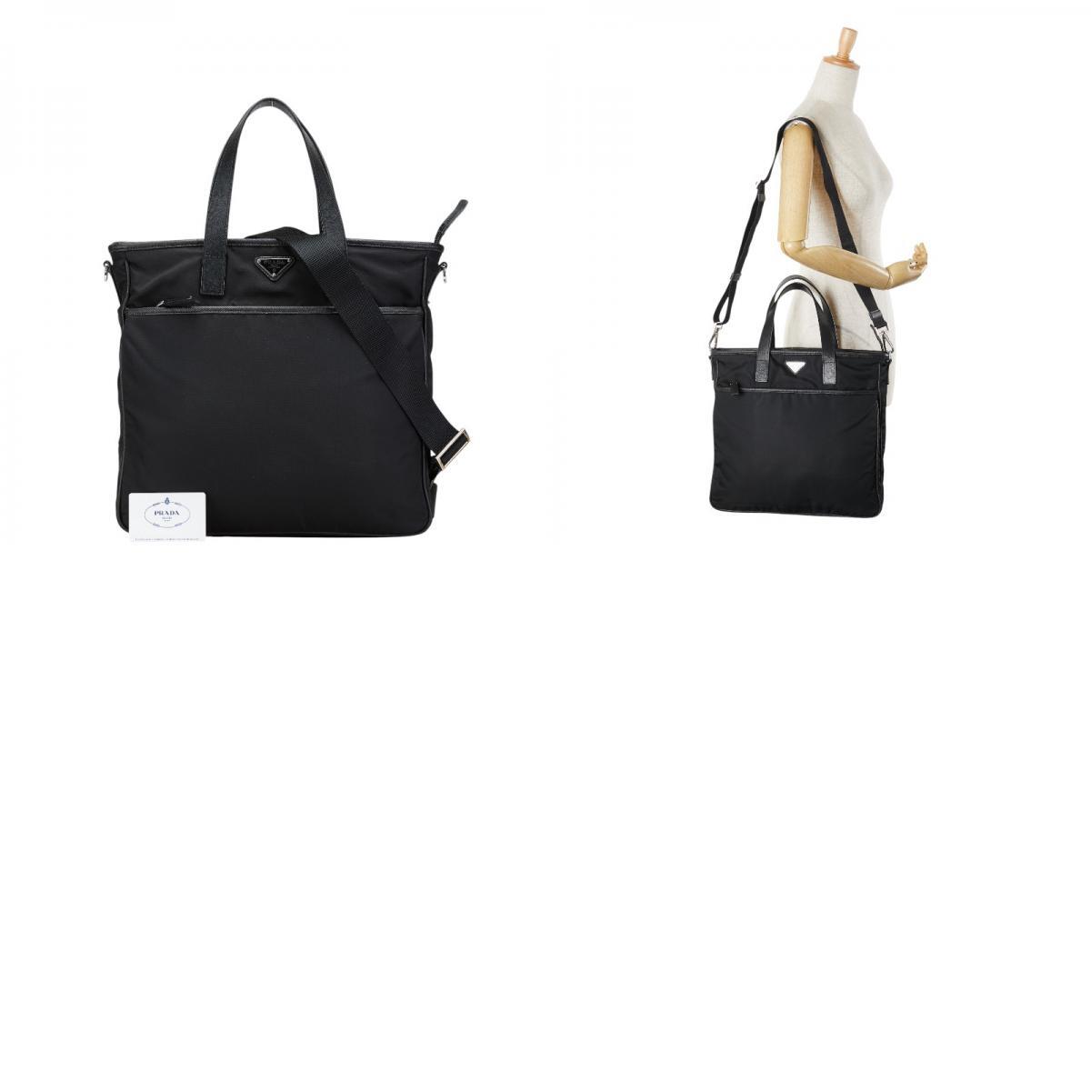 プラダ 三角ロゴプレート トートバッグ ショルダーバッグ 2WAY 2VG033 ブラック ナイロン レザー レディース PRADA 【中古】