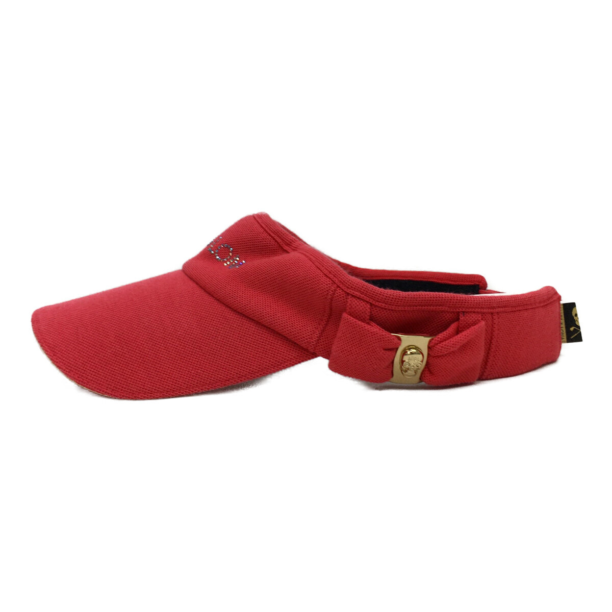 coco 中古【値下げ】マークアンドロナ MARK&LONA サンバイザー 赤系 レッド ラインストーンロゴ リボン レターパックプラス発送可 100714