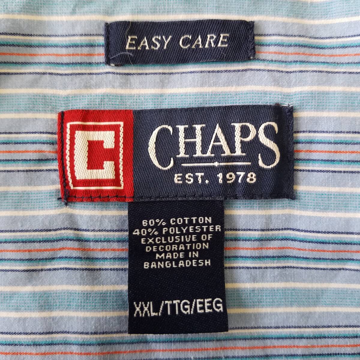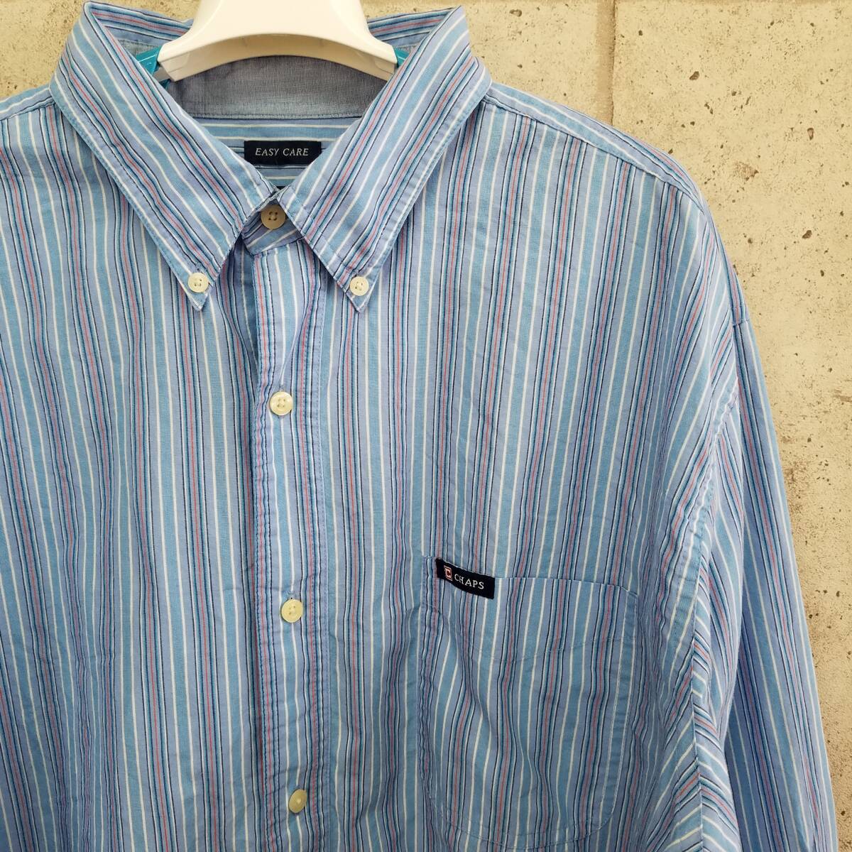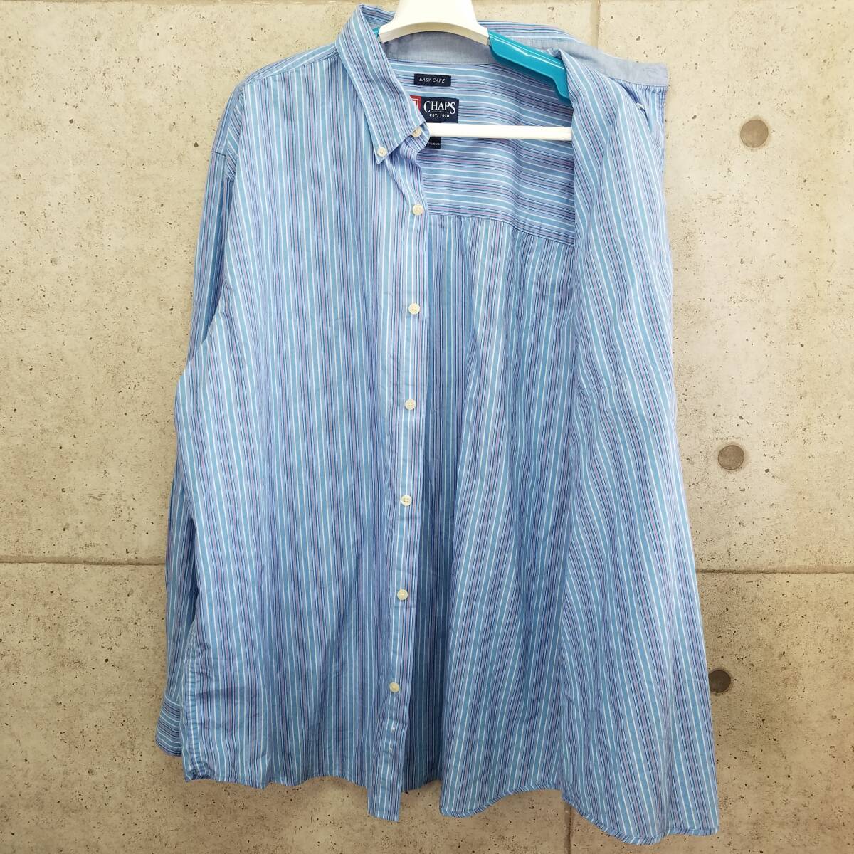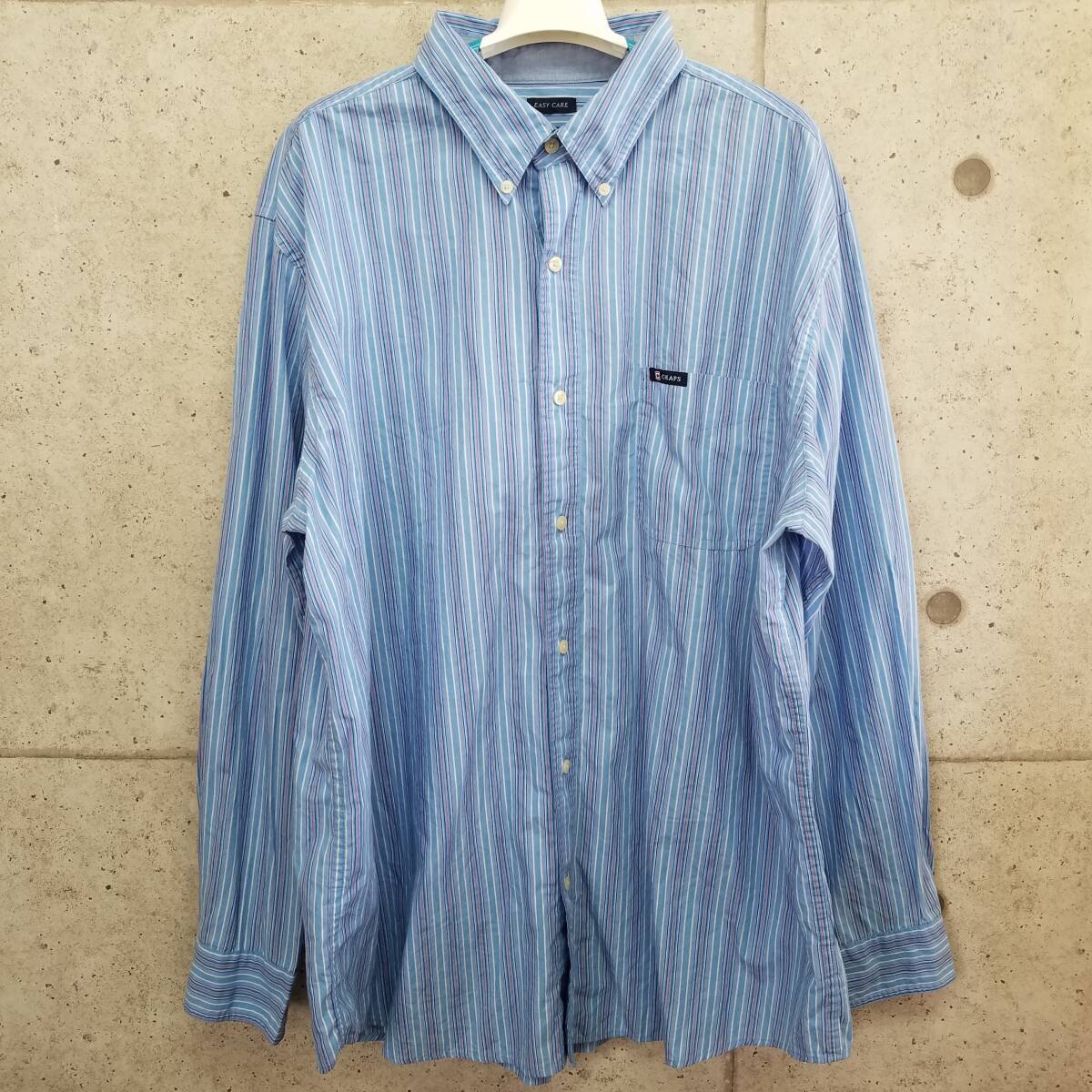中古 アメリカ古着 CHAPS チャップス 長袖シャツ メンズ XXL 2XL 3L 青 白 ブルー ホワイト ビンテージ カジュアル 送料無料