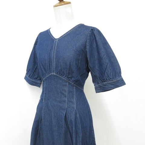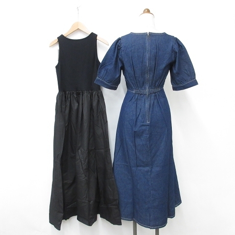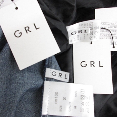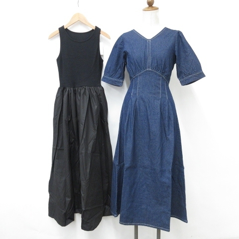 未使用品 グレイル GRL ワンピース 2枚セット 半袖 ノースリーブ Vネック ロング丈 フレア 綿 青 黒 ブルー ブラック S レディース