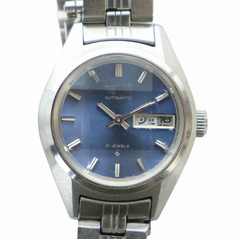 セイコー SEIKO AUTOMATIC 2706-0170 腕時計 ヴィンテージ ウォッチ 自動巻き 21石 デイデイト 9面 カットガラス シルバー色 青文字盤