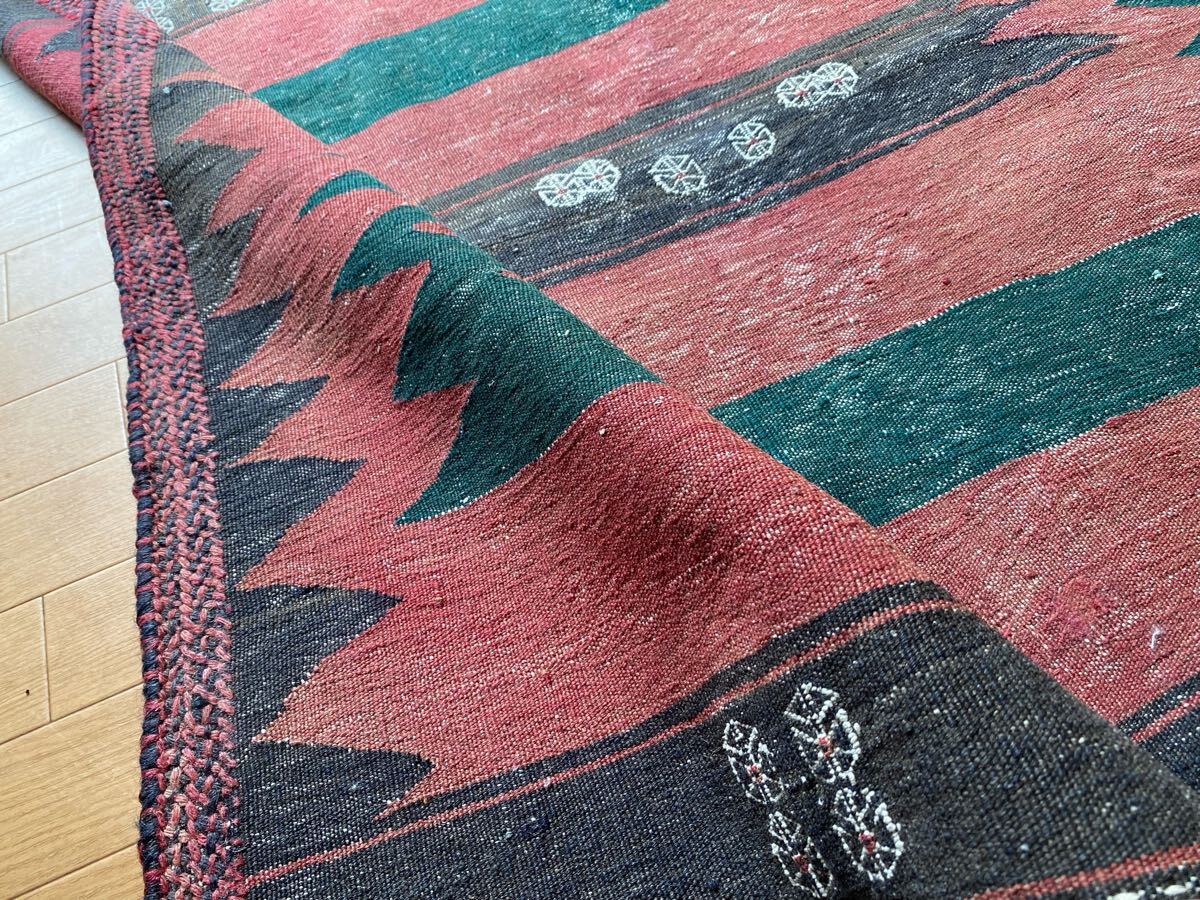 こちらの商品をご検討いただくにあたり、キリムってなに?どんなもの?とおも われる方もいらっしゃるとおもいます。手織りのものですか?産地はいろいろあ りますか?とご質問もいただいたりします。 キリムご購入、初めての方はこちらのページをご覧ください。ほかにもいろいろキリムが載っておりまして、ご参考にしていただけるとおもいます。織りや産地 をご参照していただければよりキリムについて、お分かりいただけるとおもいます。ほかの産地の織りや色合いと比べ て是非こちらのオークションにご入札ください!!