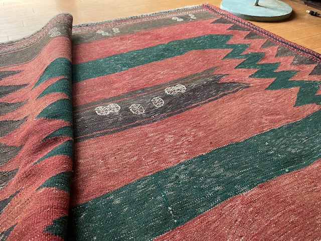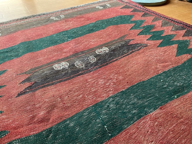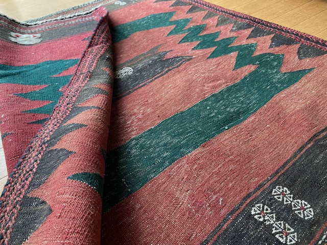 このお値段では世界中探しても手に入りませので、是非手に入れてみませんか? 大変すばらしいソフラです。ソフトな色合いもどんな家具にも合わせやすく、しっかり織られておりますので ラグとしても申し分ありません。是非キリムのある素敵な暮らしをご堪能下さい。