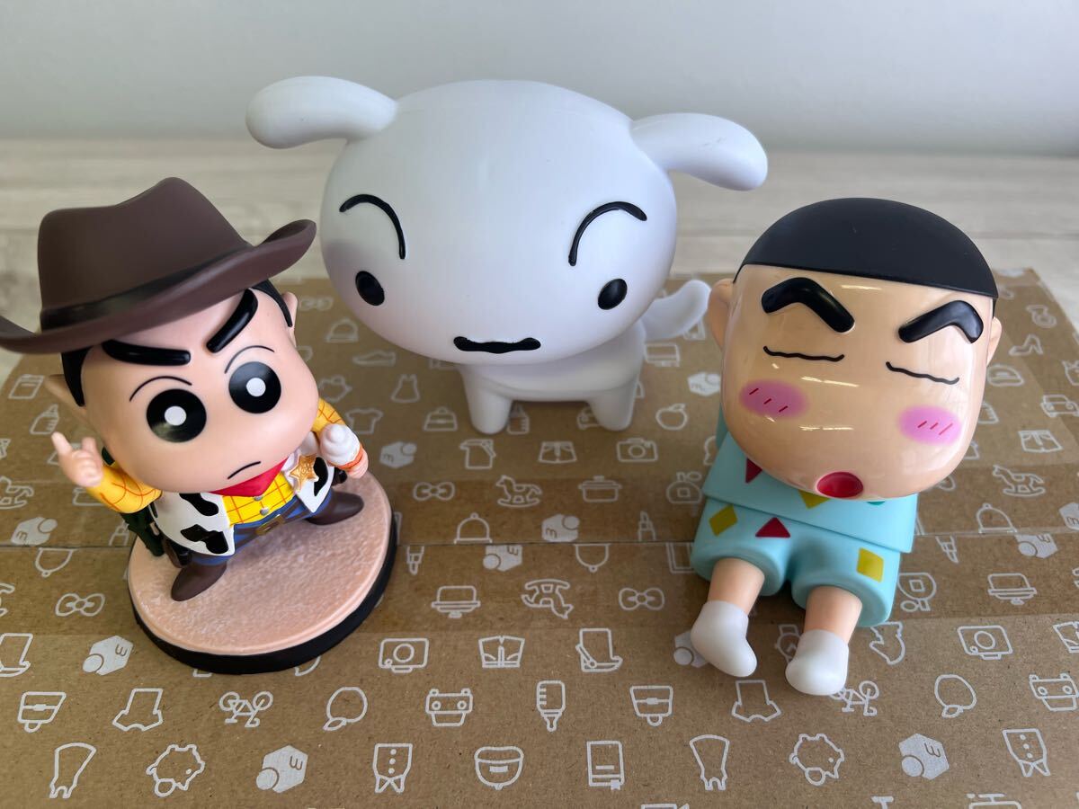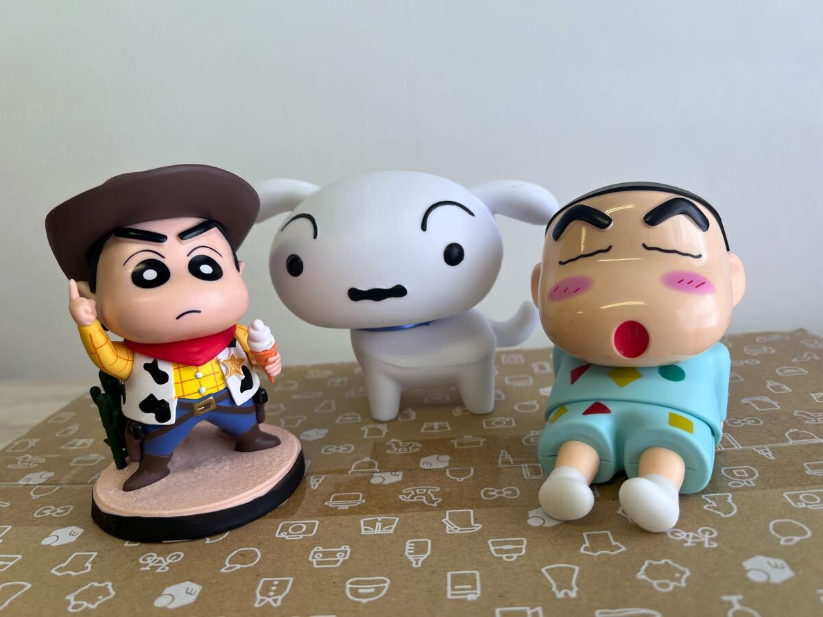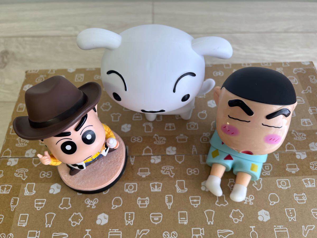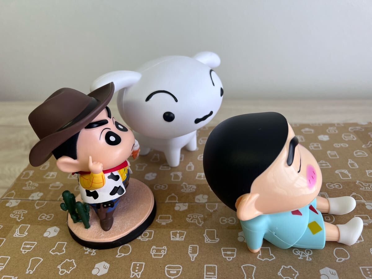 かわいいシロとスマホスタンドのしんちゃん、カウボーイしんちゃんフィギュア3体セット。