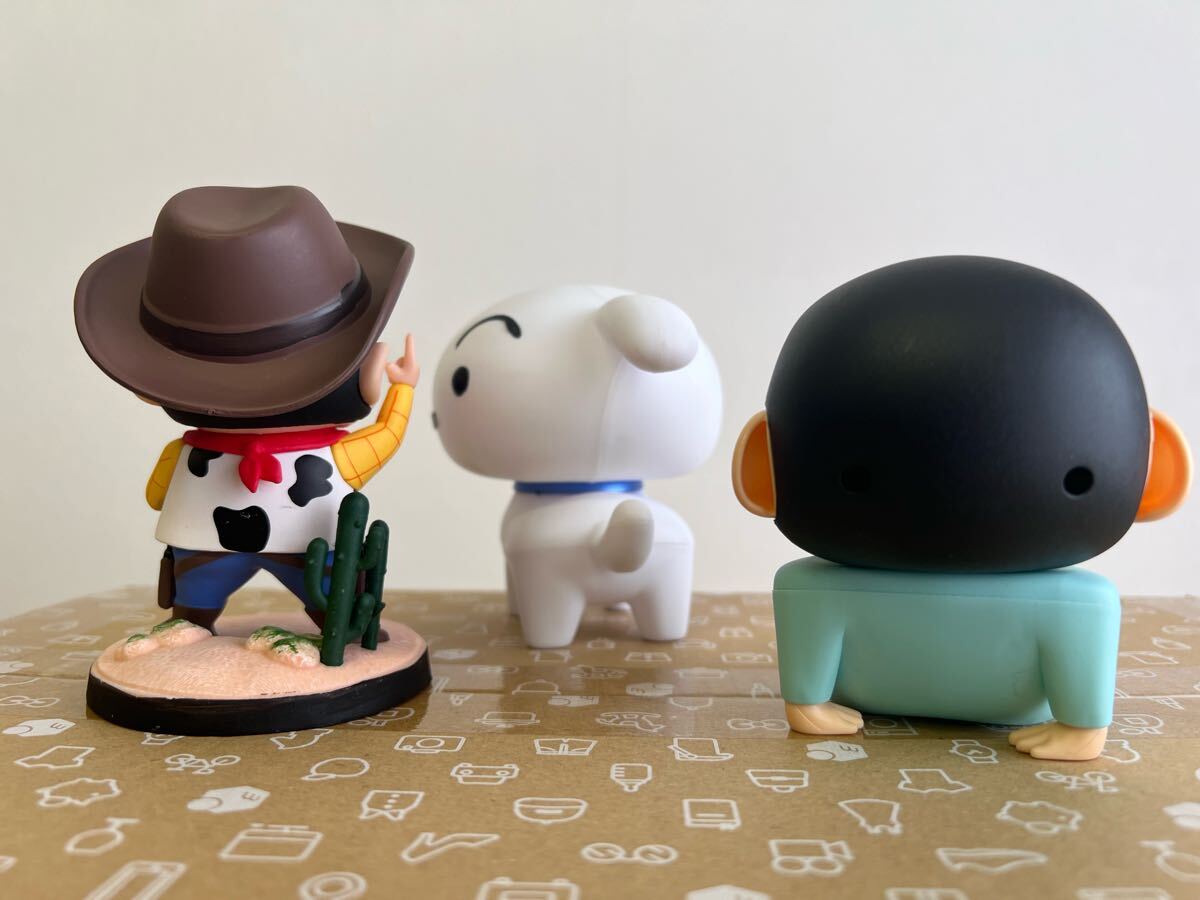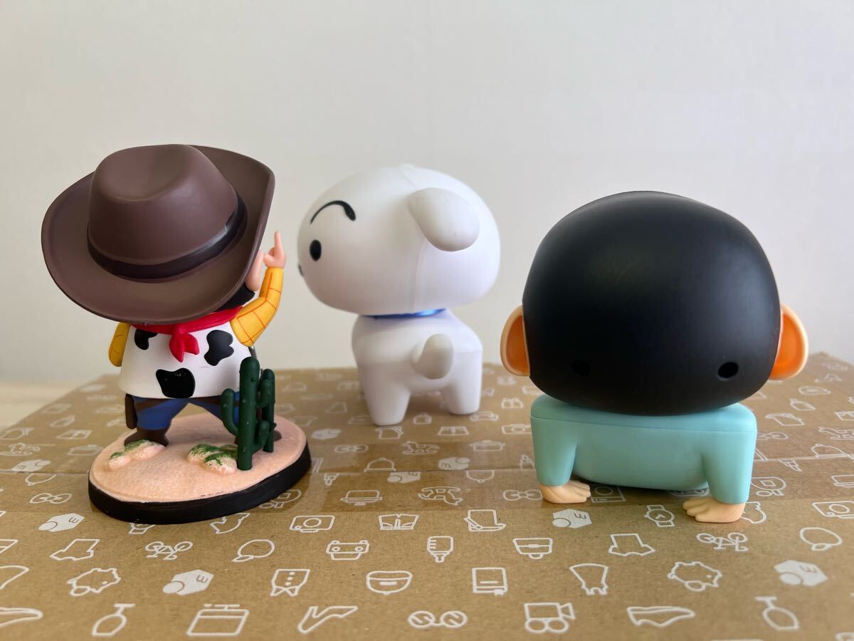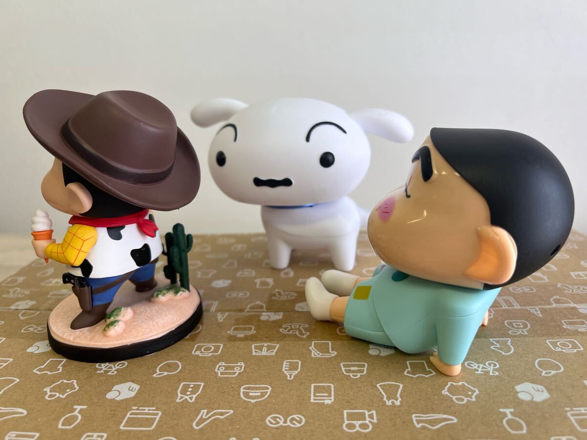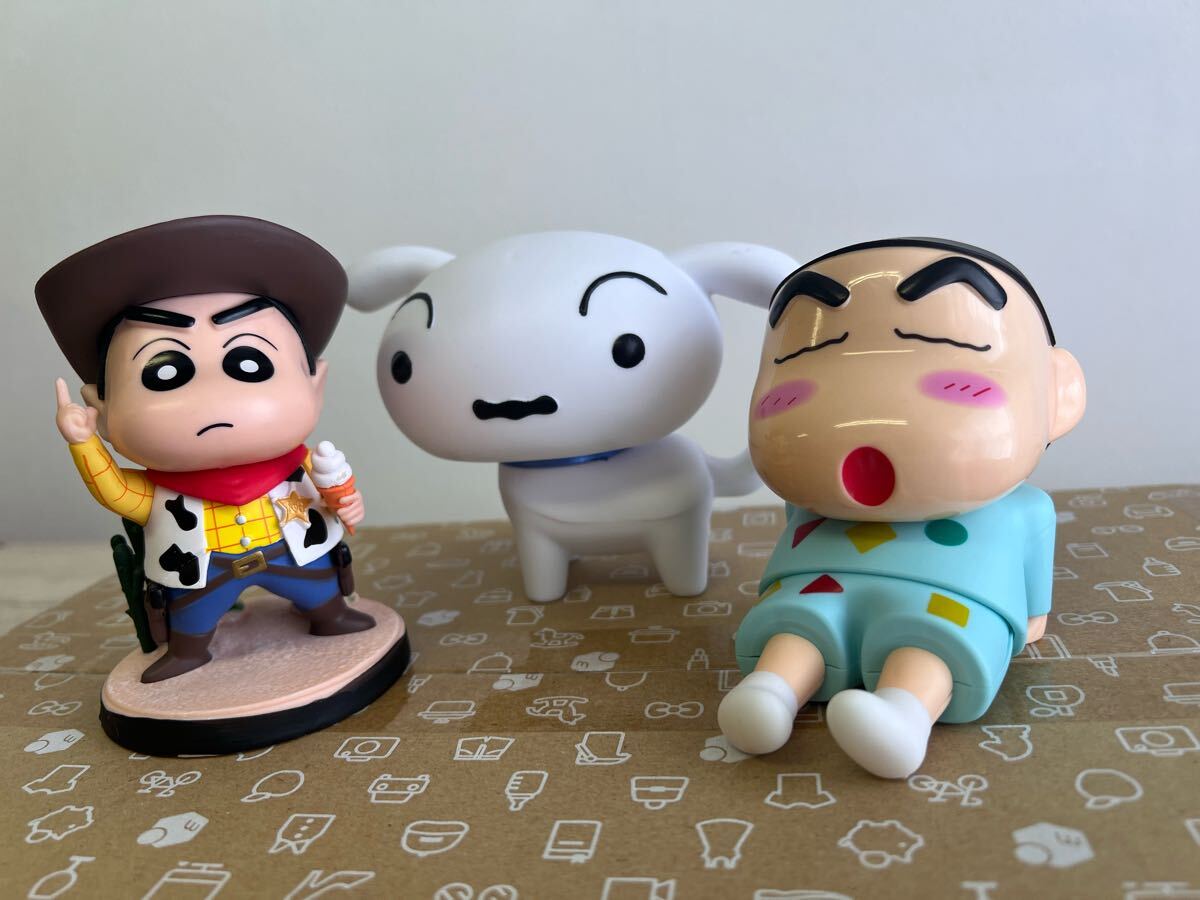 かわいいシロとスマホスタンドのしんちゃん、カウボーイしんちゃんフィギュア3体セット。