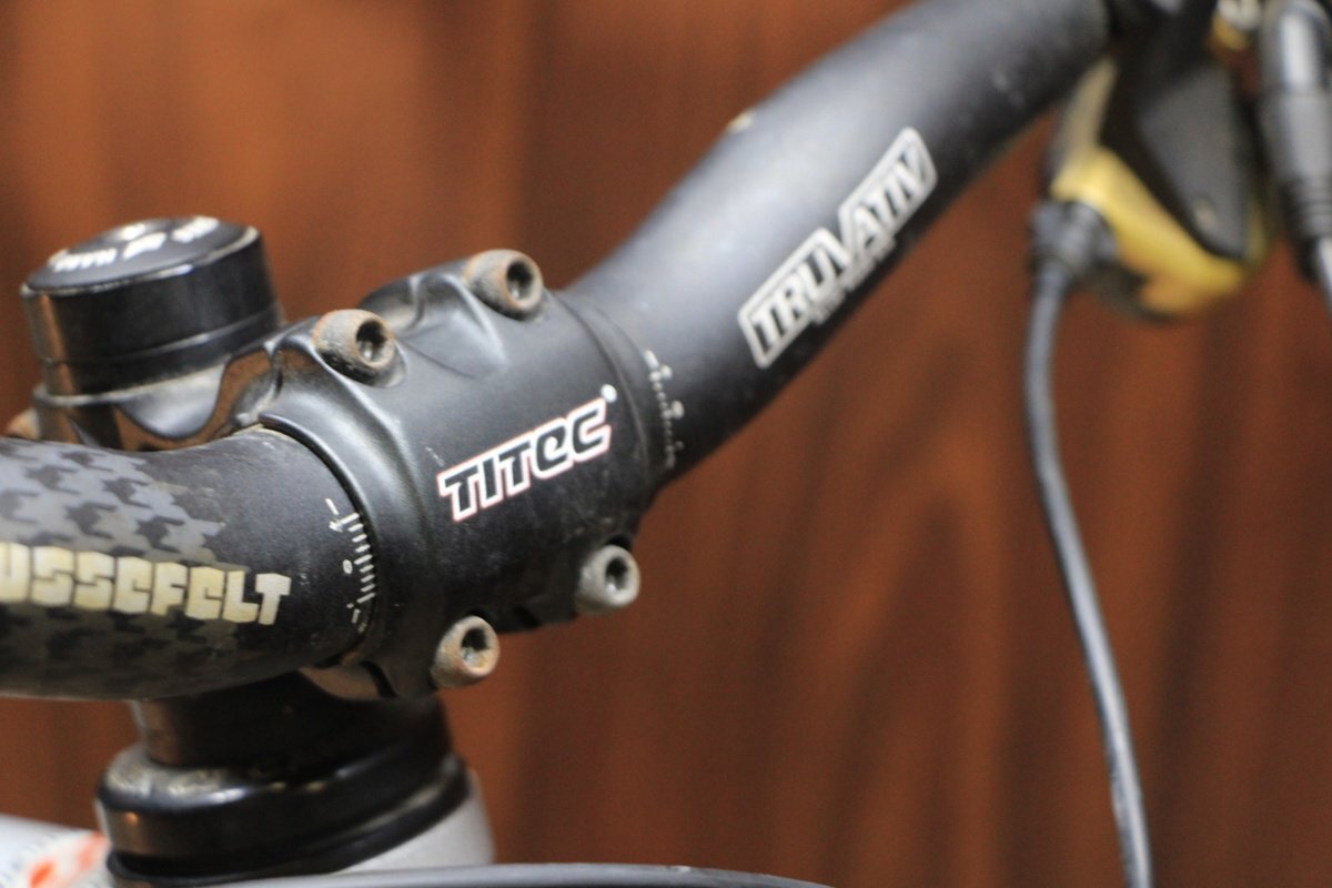 仕様 | 年式:2003 フレーム:アルミ フォーク:MANITOU SHERMAN リアサスユニット:FOX FLOAT L メインコンポ:SHIMANO 3X9S DEORE XT LX MIX ホイール:ALEXRIMS DP20 タイヤ:26X2.3 スプロケット:9S 11T:32T ハンドル幅:680mm ステム長:50mm サイズ:M トップチューブ長(C-C):600mm ※実測 (※ホリゾンタル換算値) シートチューブ長(C-T):425mm ※実測 適応身長:165cm~180cm程度 実測重量:14.4kg ※掲載画像状態 |
