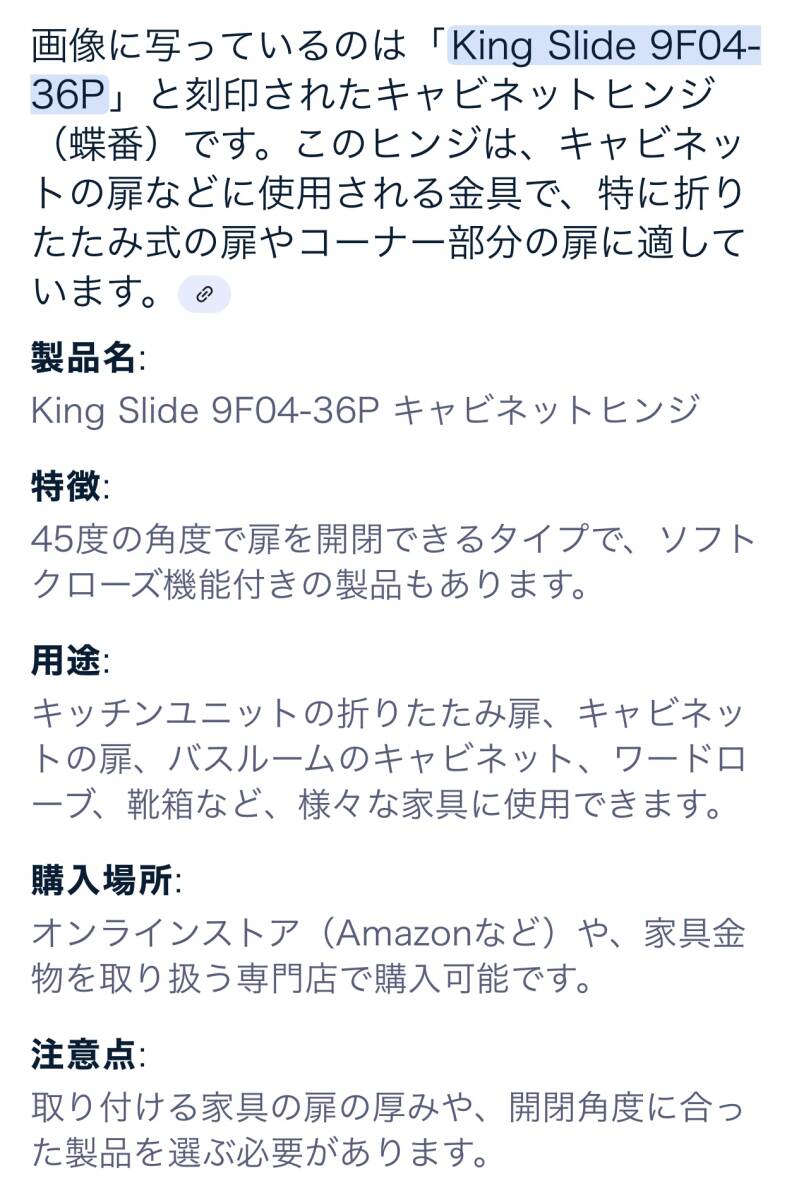 King Slide 【キャビネットヒンジ 9F04-36P 4個セット ネジ付】 蝶番 丁番 45度開き 扉 開閉 ソフトクローズ 折りたたみ 箱 コーナー