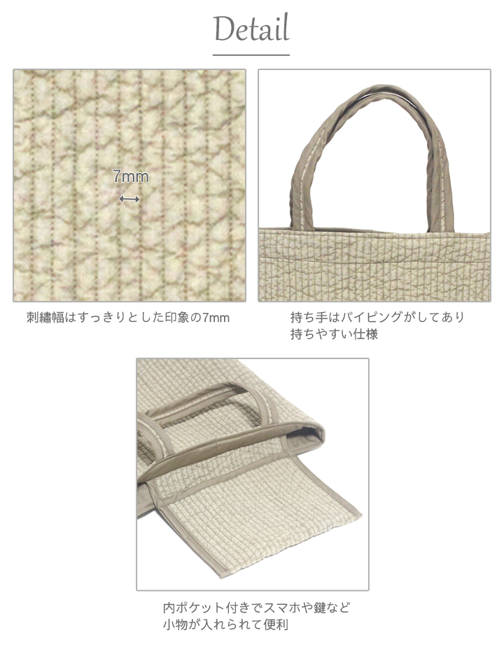 商品説明 | 『ヌビバッグ』とは?! ヌビとは韓国語でキルティングしたものを意味します。 そのキルティングの生地で韓国の布団であるイブルを作ることからイブルバッグとも言います。 ◆特徴◆ やわらかく肌触りが抜群! 軽くて肩コリ知らず! 洗える生地なので清潔! イブルのナチュラルの風合いがシンプルなので、 カジュアルファッションからキレイめファッションまでマッチします!! コンビニへお買い物♪公園へお散歩♪ちょこっとお出かけにぴったりです。 高さがありますので500mlペットボトルもすっぽり入ります。 ちいさめですが、たいていの身の回りのものは入ります!! |