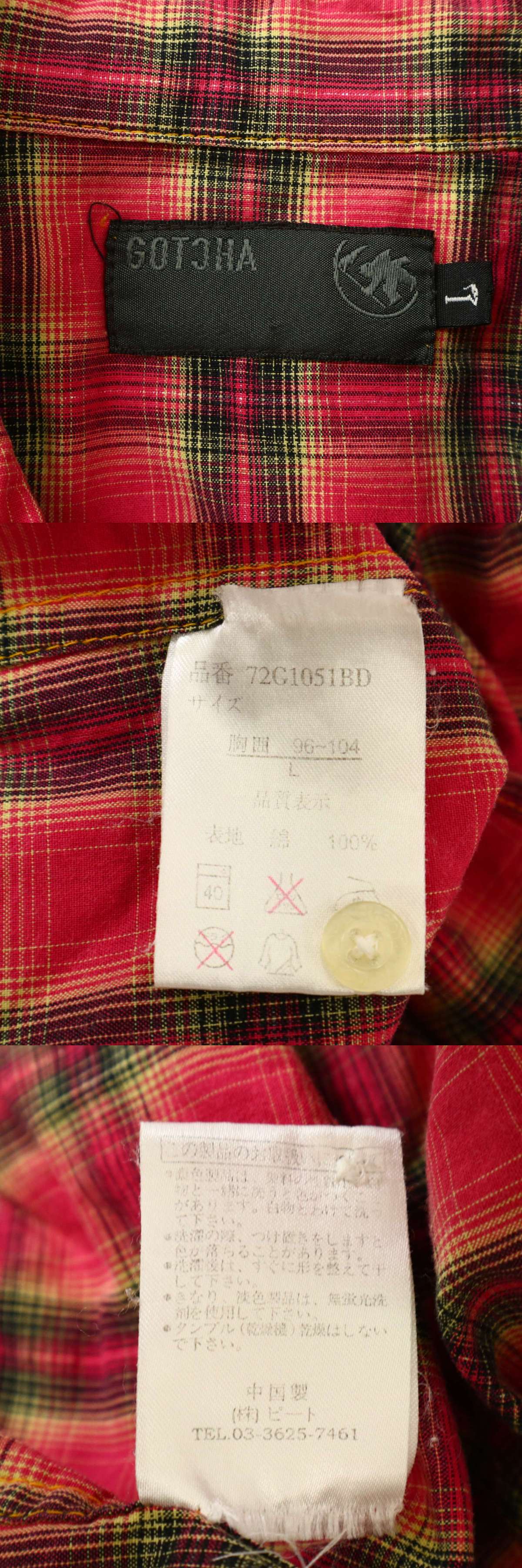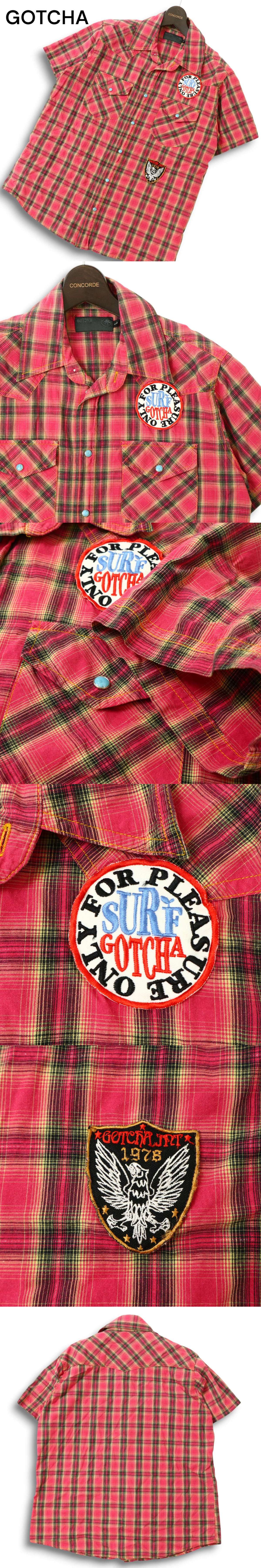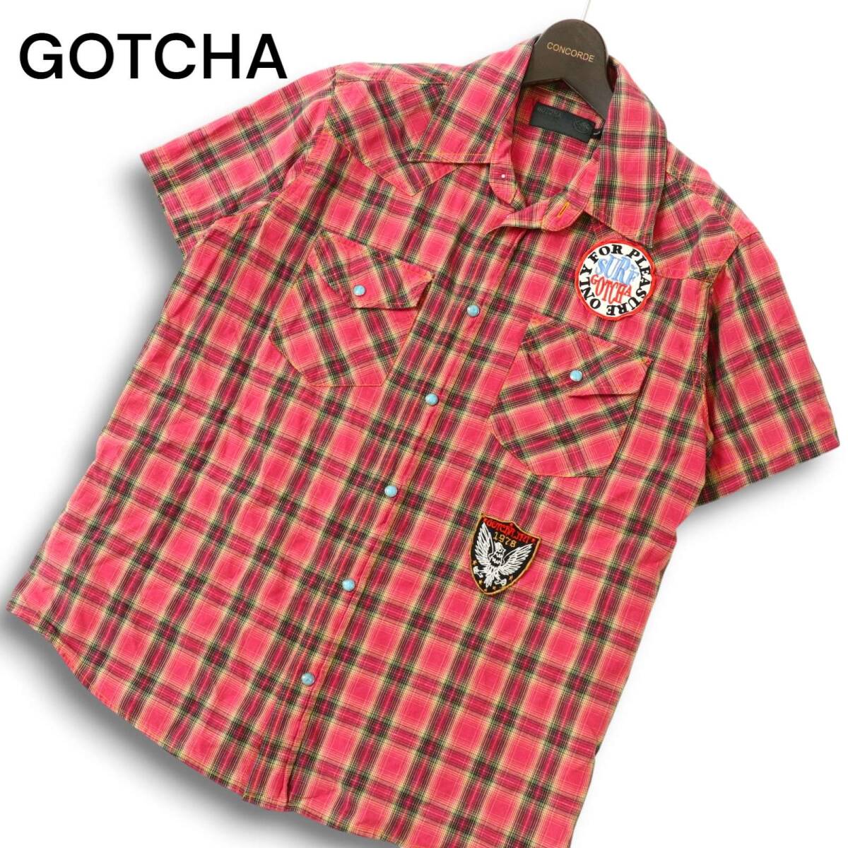 GOTCHA ガッチャ 春夏 ロゴワッペン★ 半袖 ウエスタン チェック シャツ Sz.L メンズ サーフ