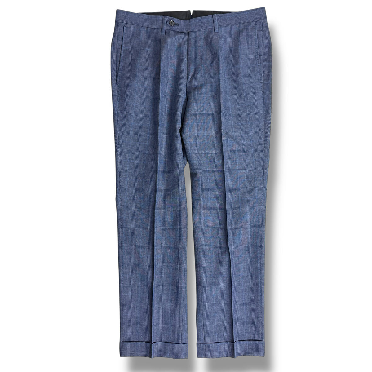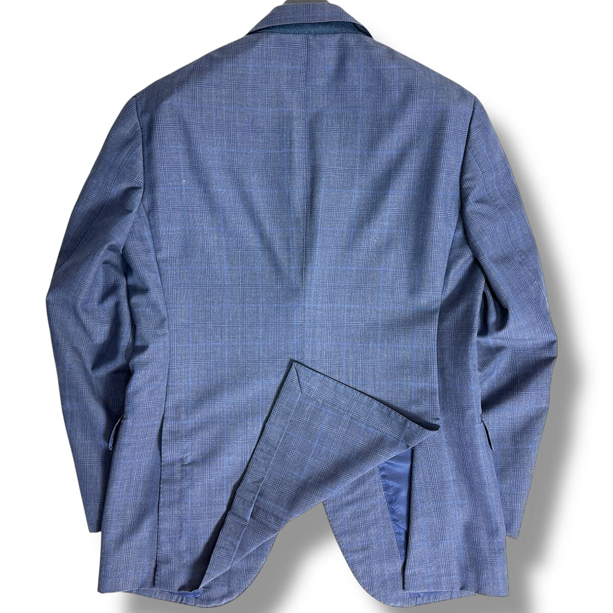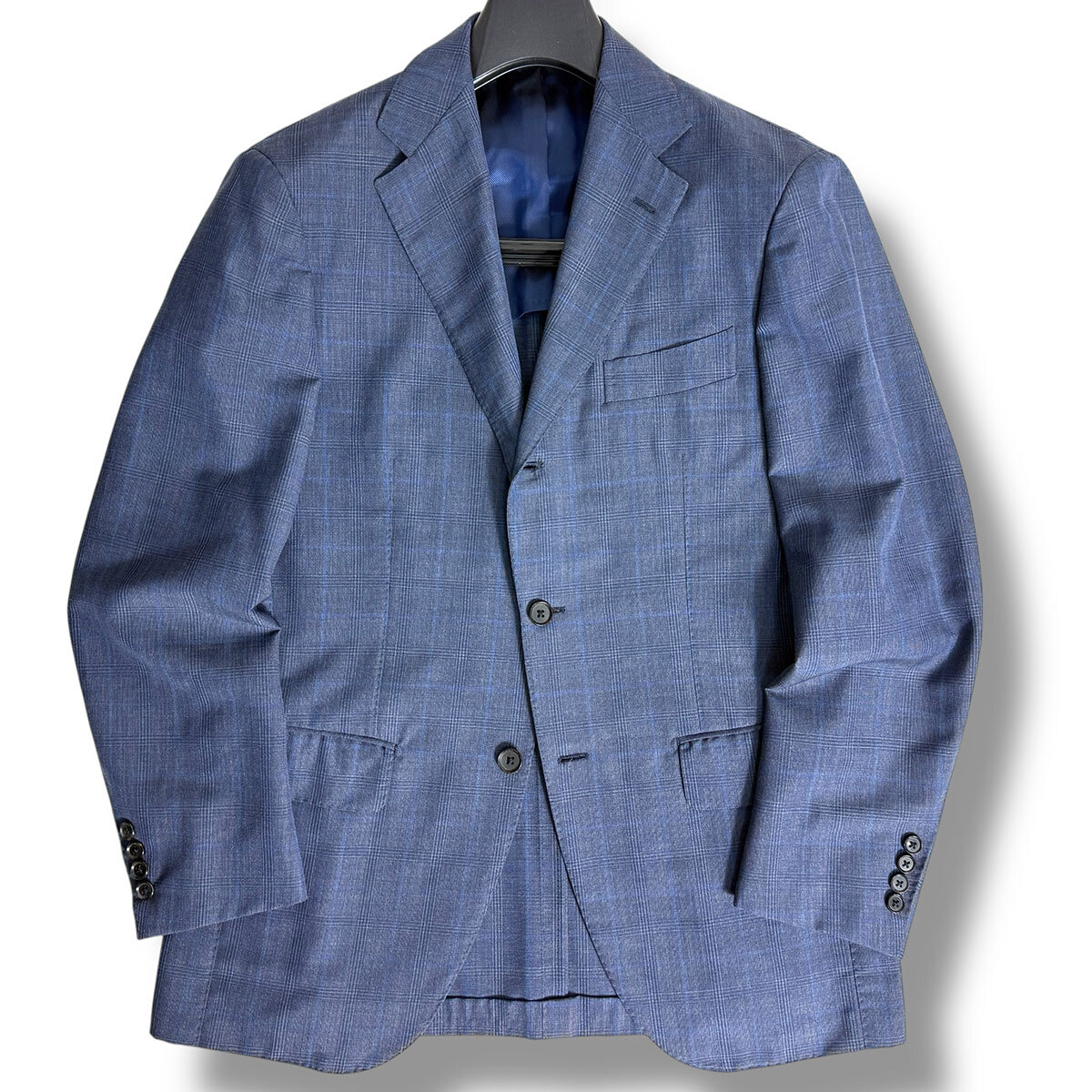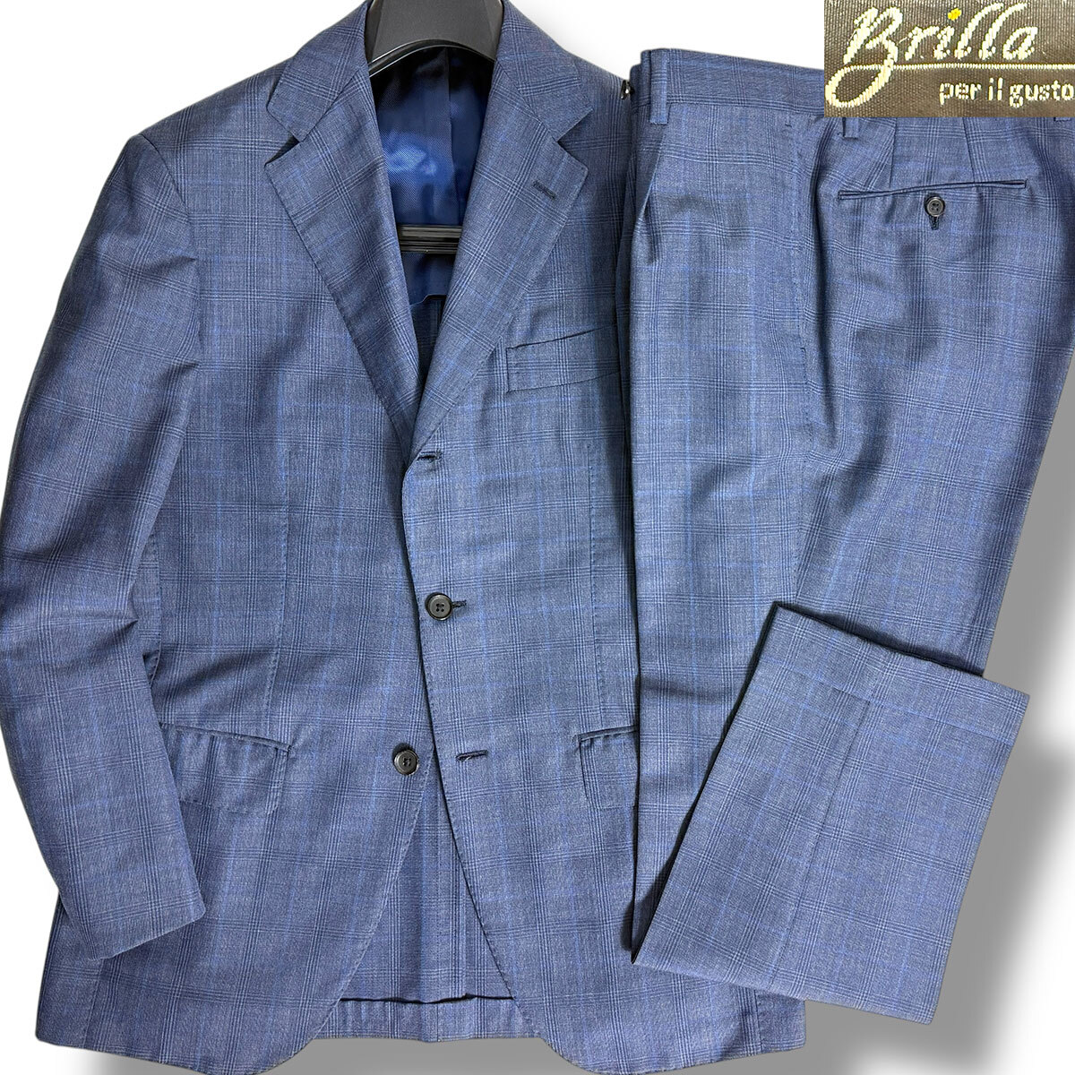 J6409 超美品 ブリッラペルイルグスト DORMEUIL生地 モヘヤミックス グレンプレイド柄スーツ ネイビー 48 Brilla per il gusto
