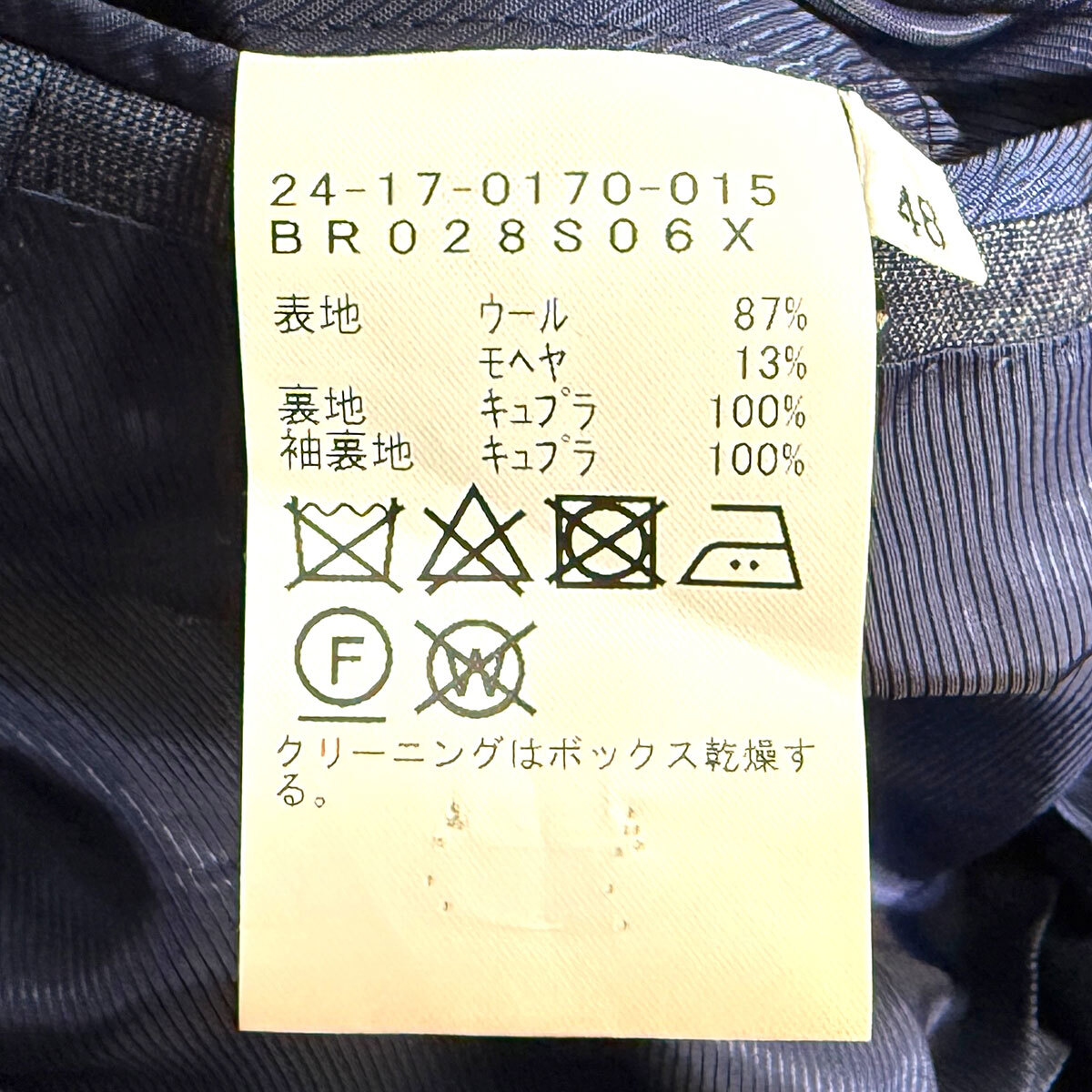 スーツやジャケットの場合、実寸より品質タグ画像のサイズ(身長、胸囲、胴囲)をご確認ください。