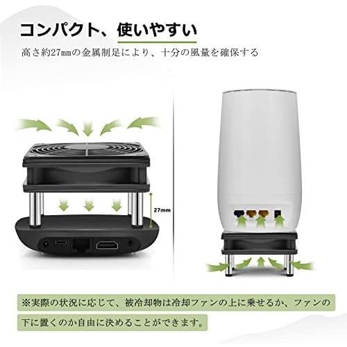 【※ご注意を:ファンガード取付には向きがあり、膨らみを外向きに付けないとファンが回りません!】 電子機械をUSB 冷却ファンに乗せて、風が下部から対象物に当てるように冷却させます。