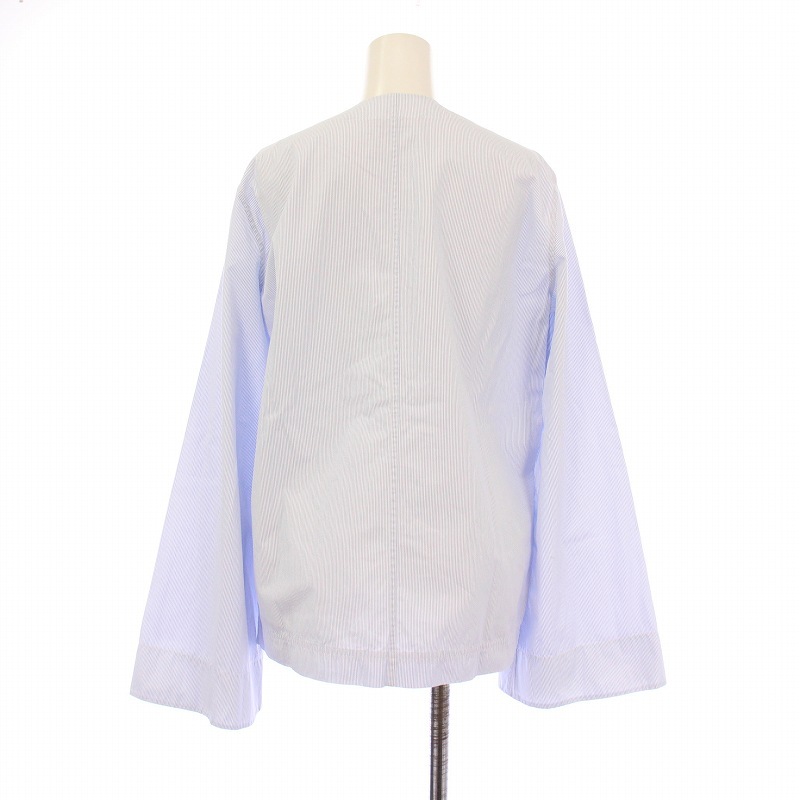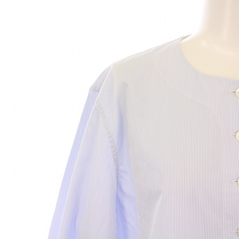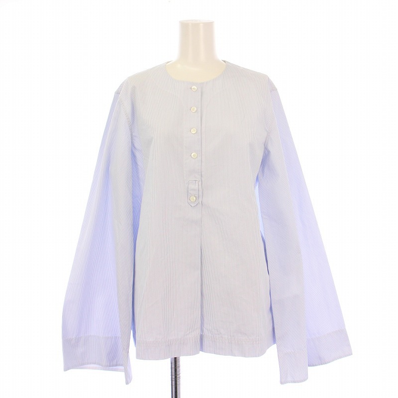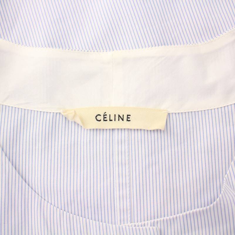 セリーヌ CELINE シャツ ブラウス 長袖 ノーカラー プルオーバー ハーフボタン ストライプ柄 38