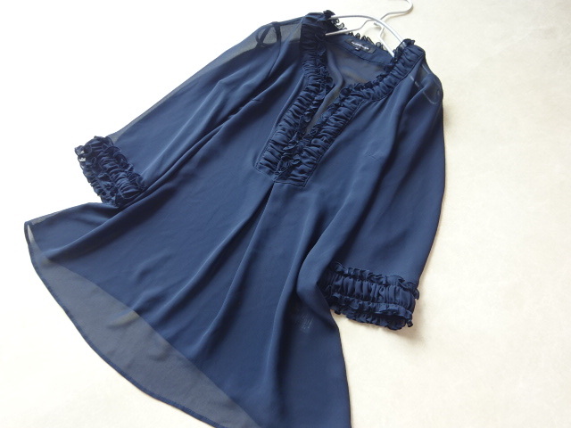 Mプルミエ ネイビー シアーブラウス サイズ36