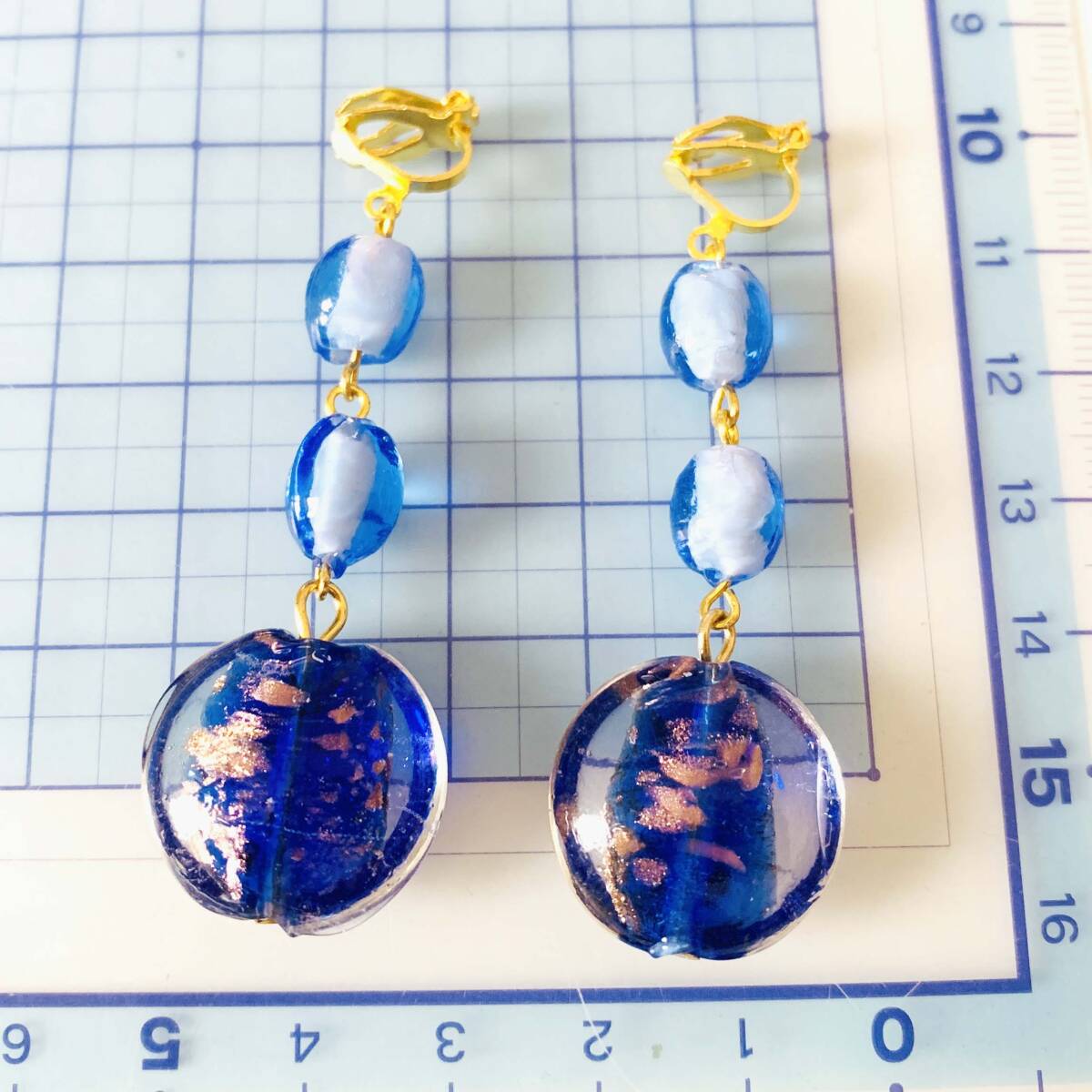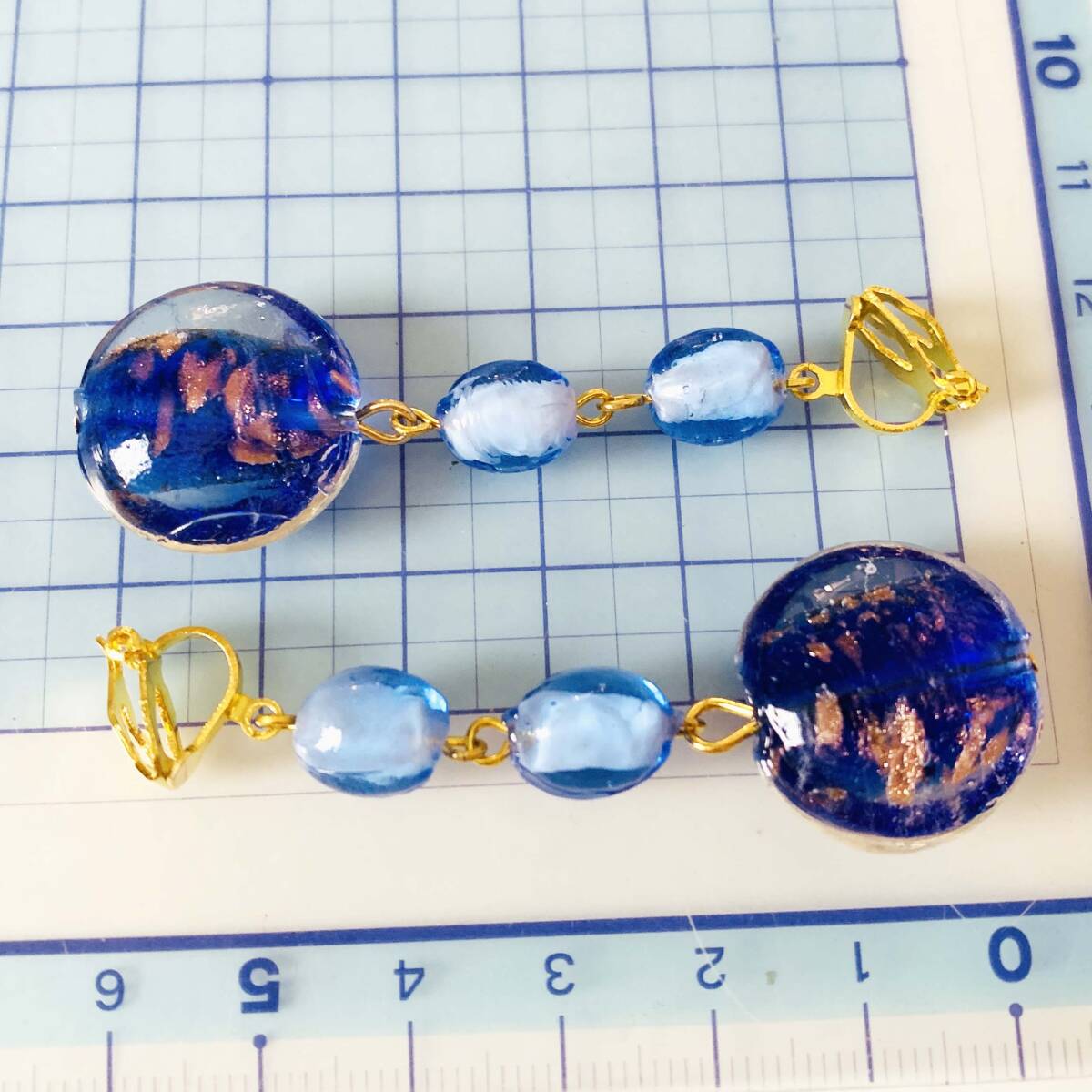 保管品未使用 ベネチアングラス 瑠璃ガラス ハンドメイド 手作り ゴールド イヤリング No.IMG_6049
