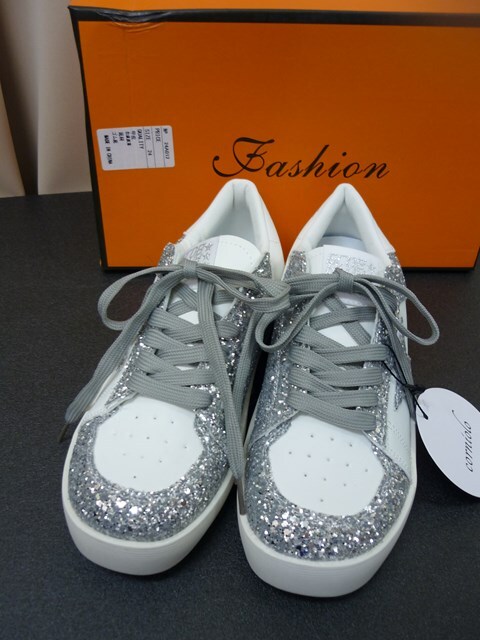 シルバーラメグリッター星デザインスニーカー(24・0cm)【新品】