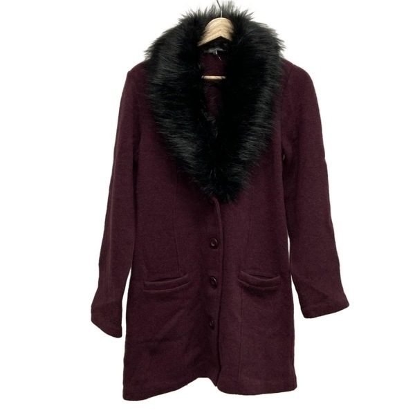 ローラアシュレイ LAURAASHLEY サイズS - ボルドー×黒 レディース 長袖/ニット/ファー/ファー取り外し可/秋/冬 コート