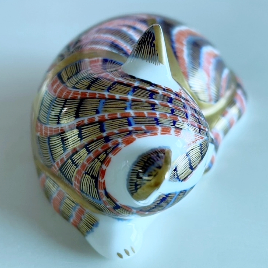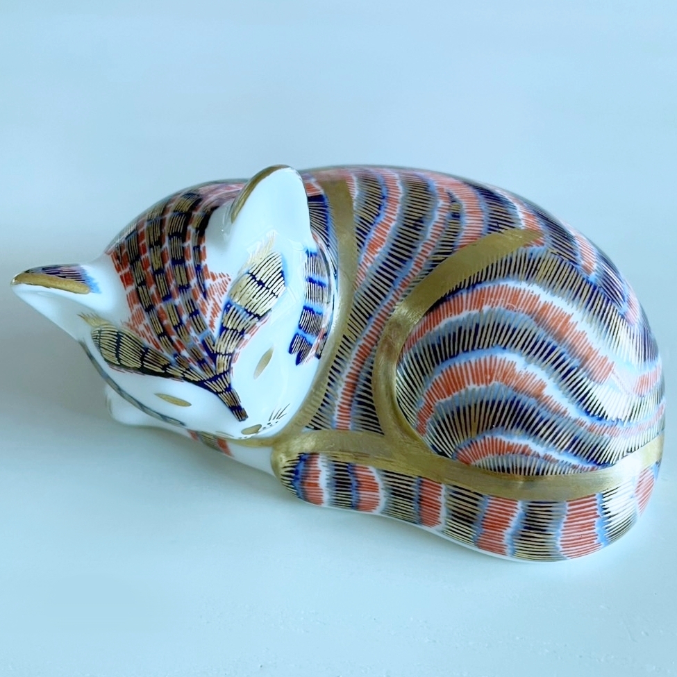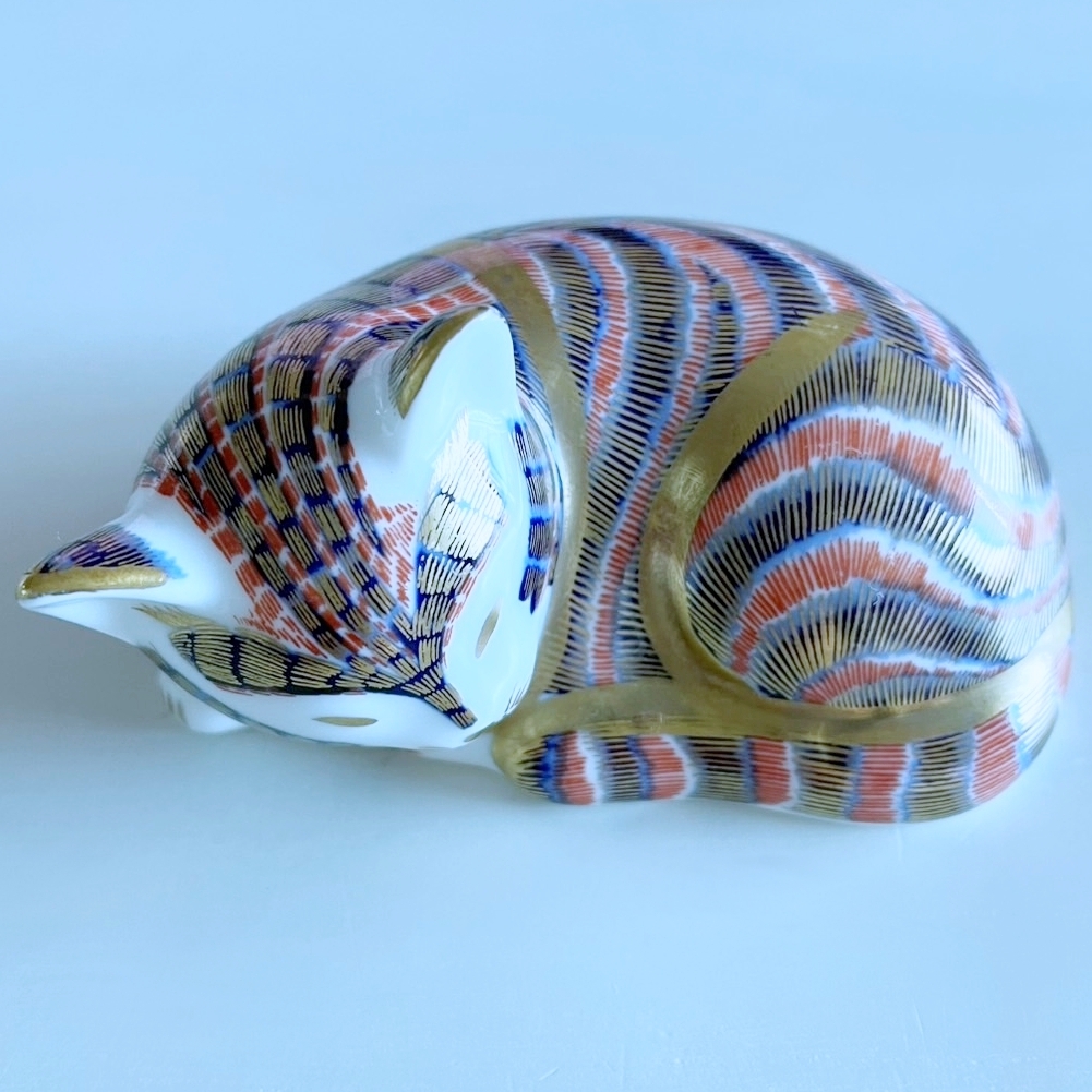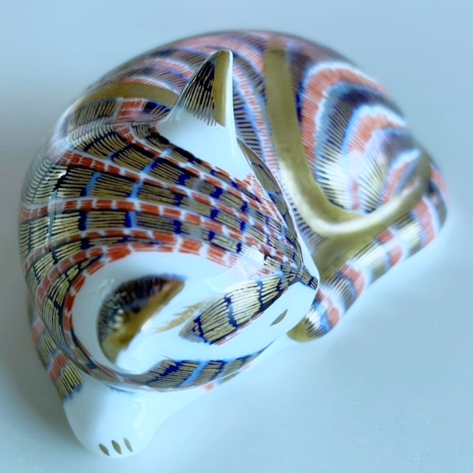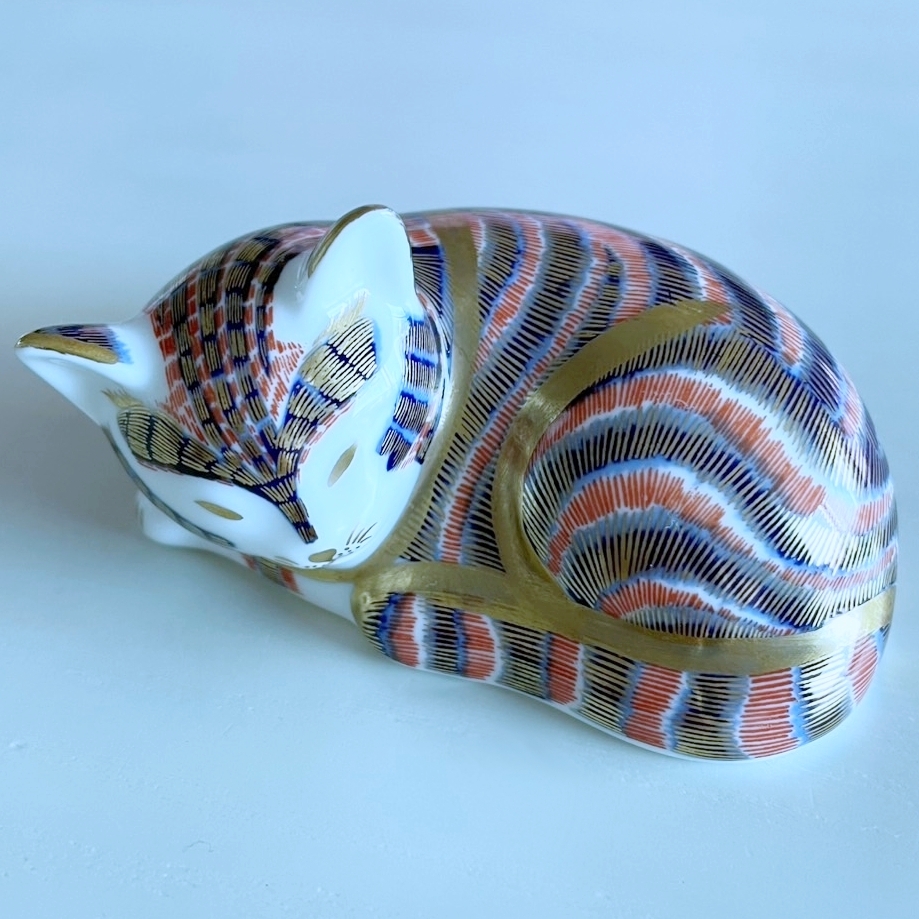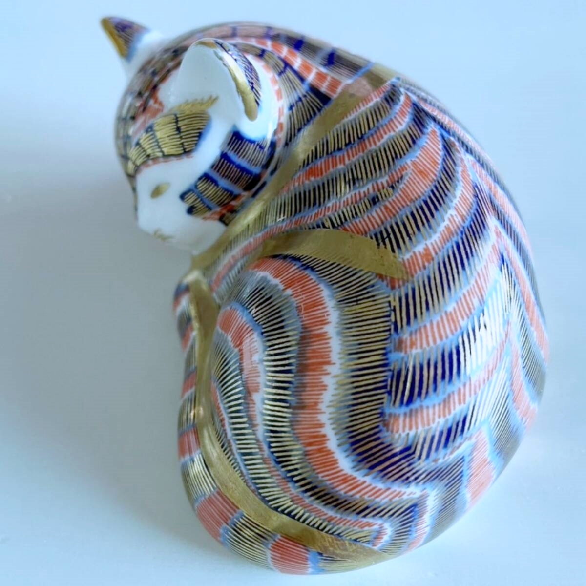 #l15 即決 ROYAL CROWN DERBY ロイヤルクラウンダービー 猫 ねこ ペーパーウェイト フィギュリン 高さ約4.5cm 横約7.5cm