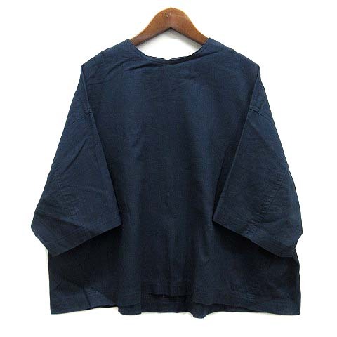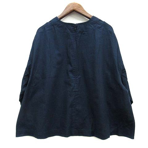 ワイズ Y's ヨウジヤマモト コットンリネン ワイド ブラウス 七分袖 プルオーバー ネイビー 紺 2 レディース