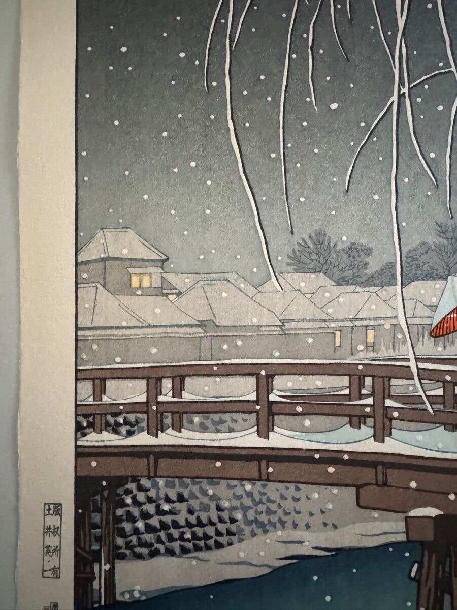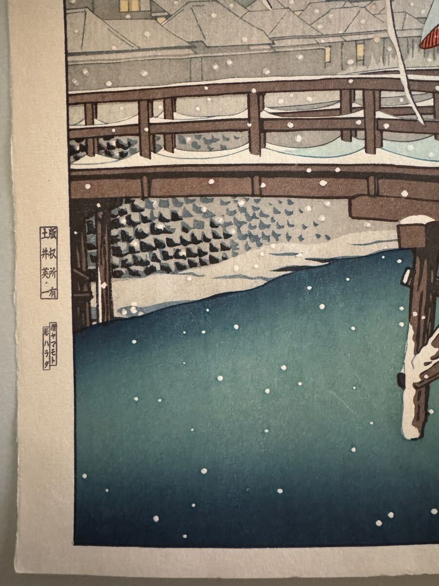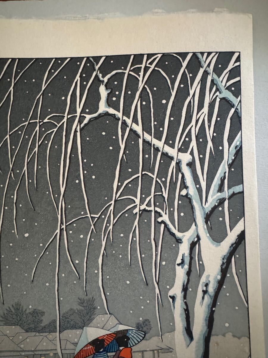 C【真作保証】川瀬巴水 暮るる雪(江戸川)オリジナル 昭和七年 手摺り木版画 後摺 新版画 kawase Hasui woodblock print shinhanga