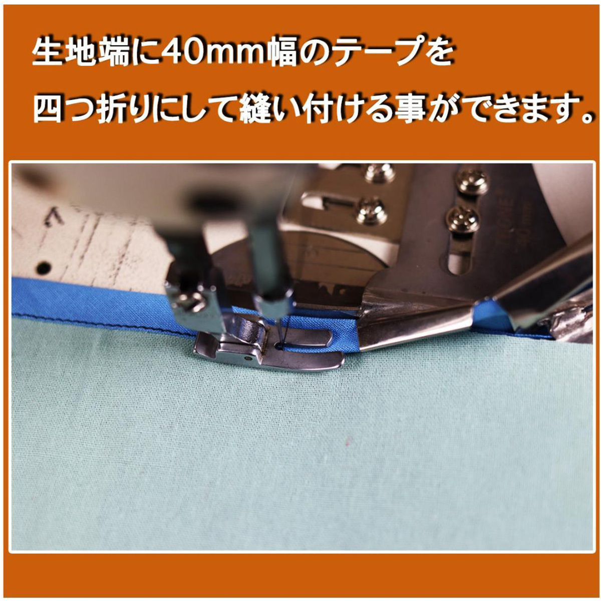 簡単に四つ折りのテープを 縫い付ける事ができます。